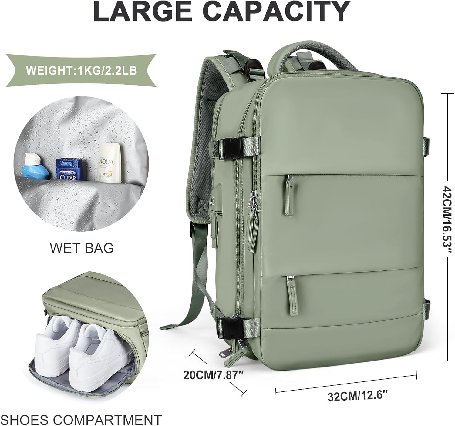 coowoz Large Travel Backpack For Women Men,Carry On Backpack,Hiking Backpack Waterproof Outdoor Sports Rucksack Casual Daypack travel essentials(Gray Green)