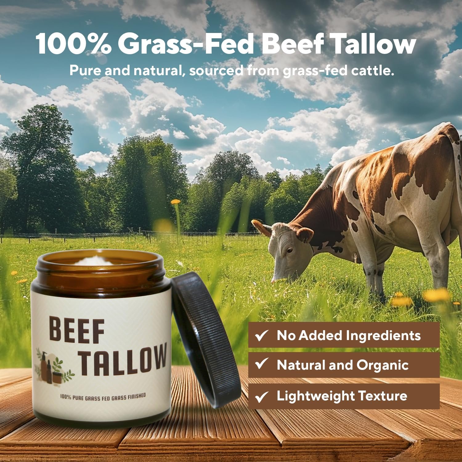100% PURE INGREDIENTS: Our product contains nothing but grass-fed and finished premium whipped beef tallow—no additives or fillers.