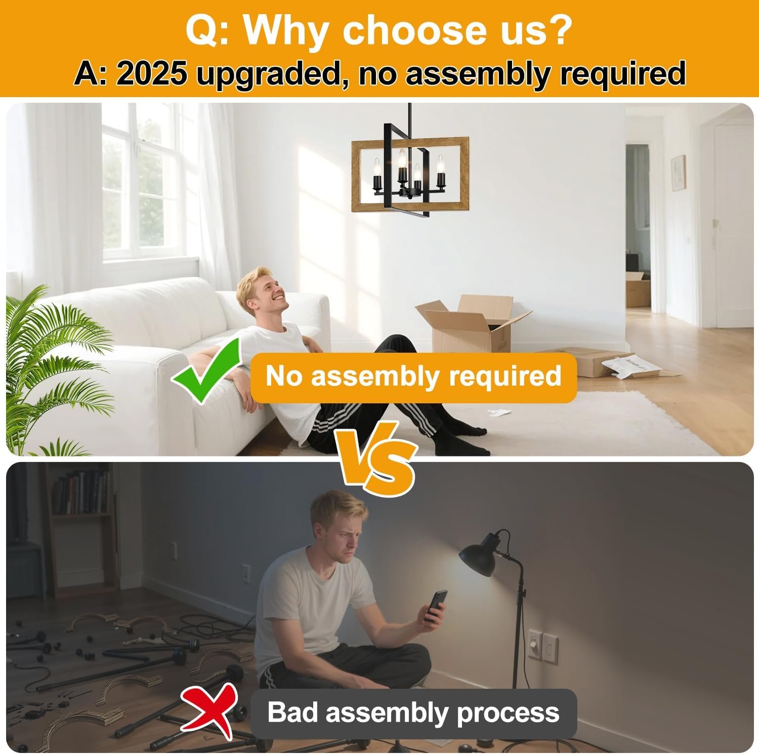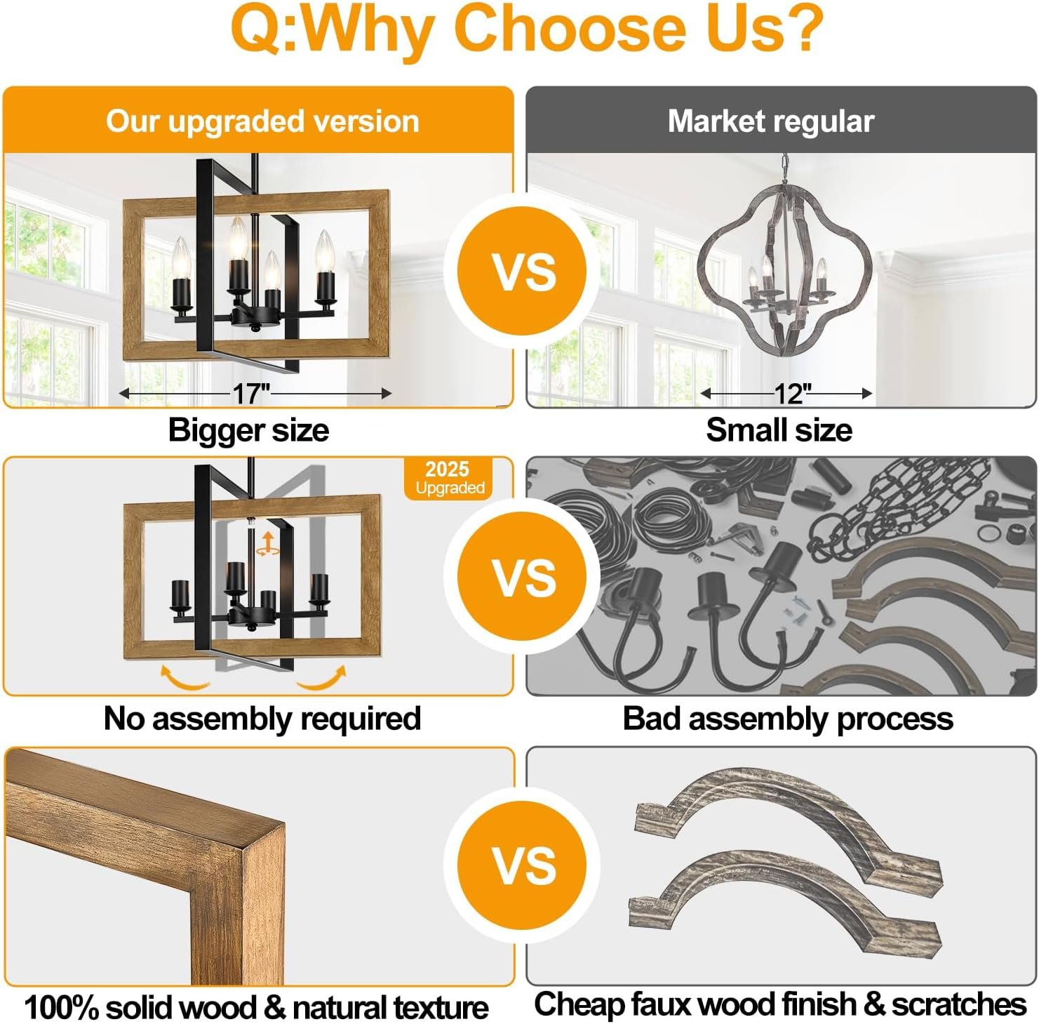 2025 Upgraded No Assembly Required Farmhouse Chandelier