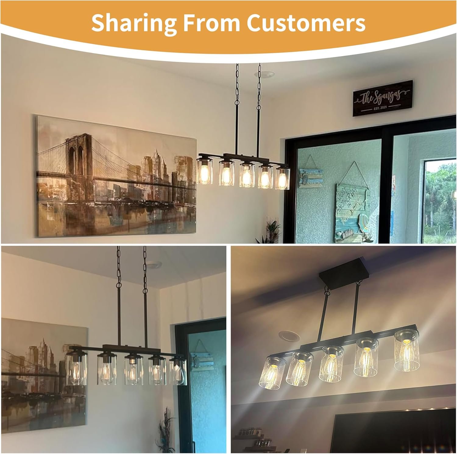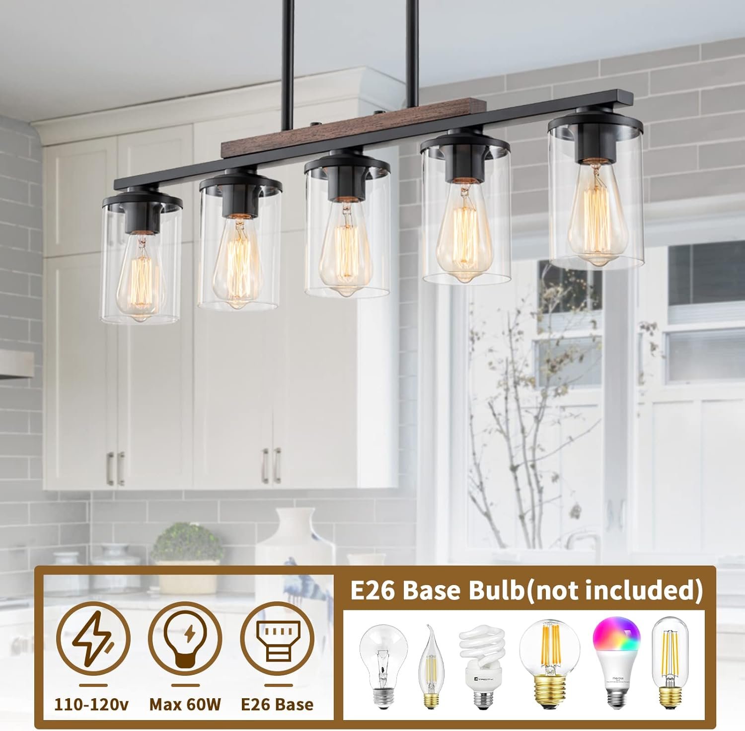 This 5-light dining room light fixtures will the the best choice for your home !You just need 5 pcs E26 bulbs(NOT included) to make your kitchen much brighter, and adds much rustic farmhouse feel !