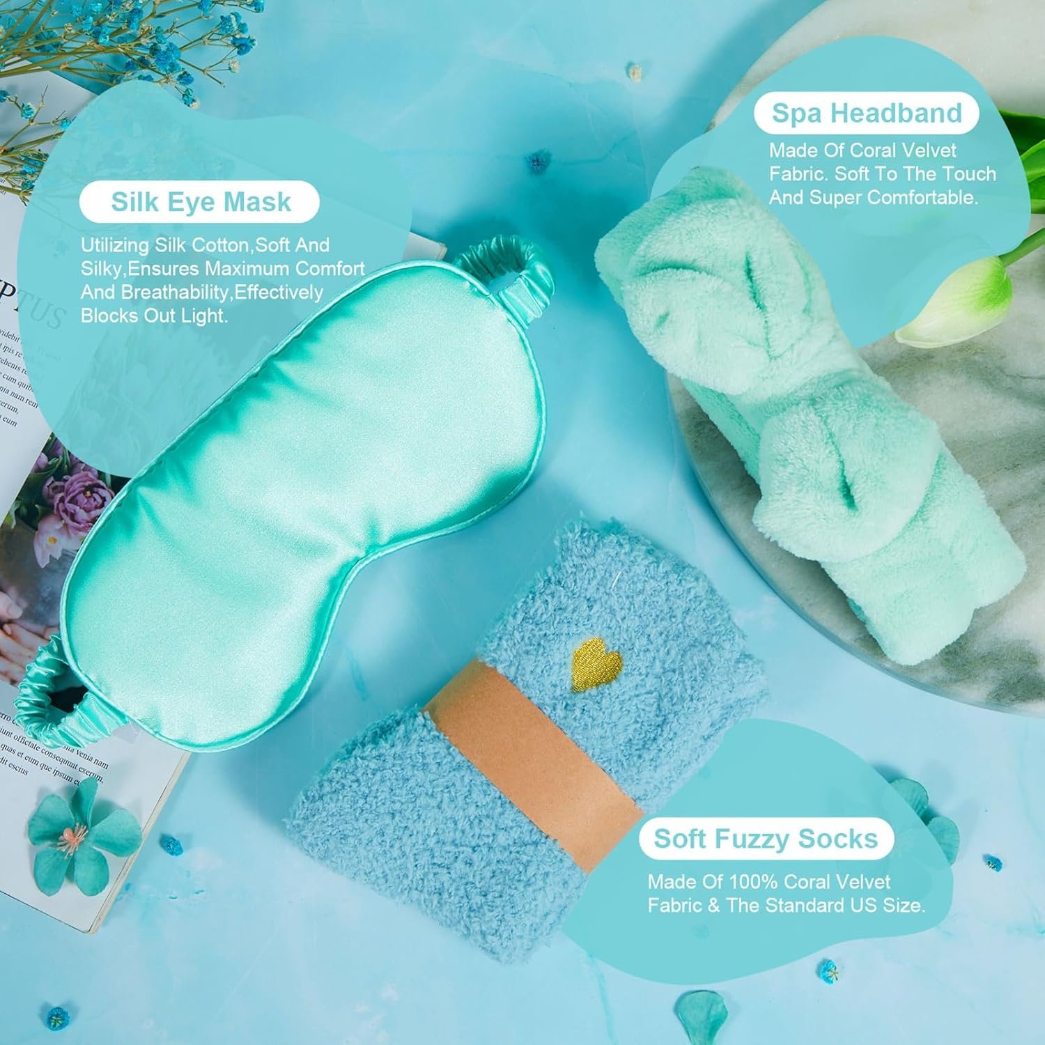 1pcs x Spa Headband…………………………………………….1pcs x Soft Fuzzy Socks