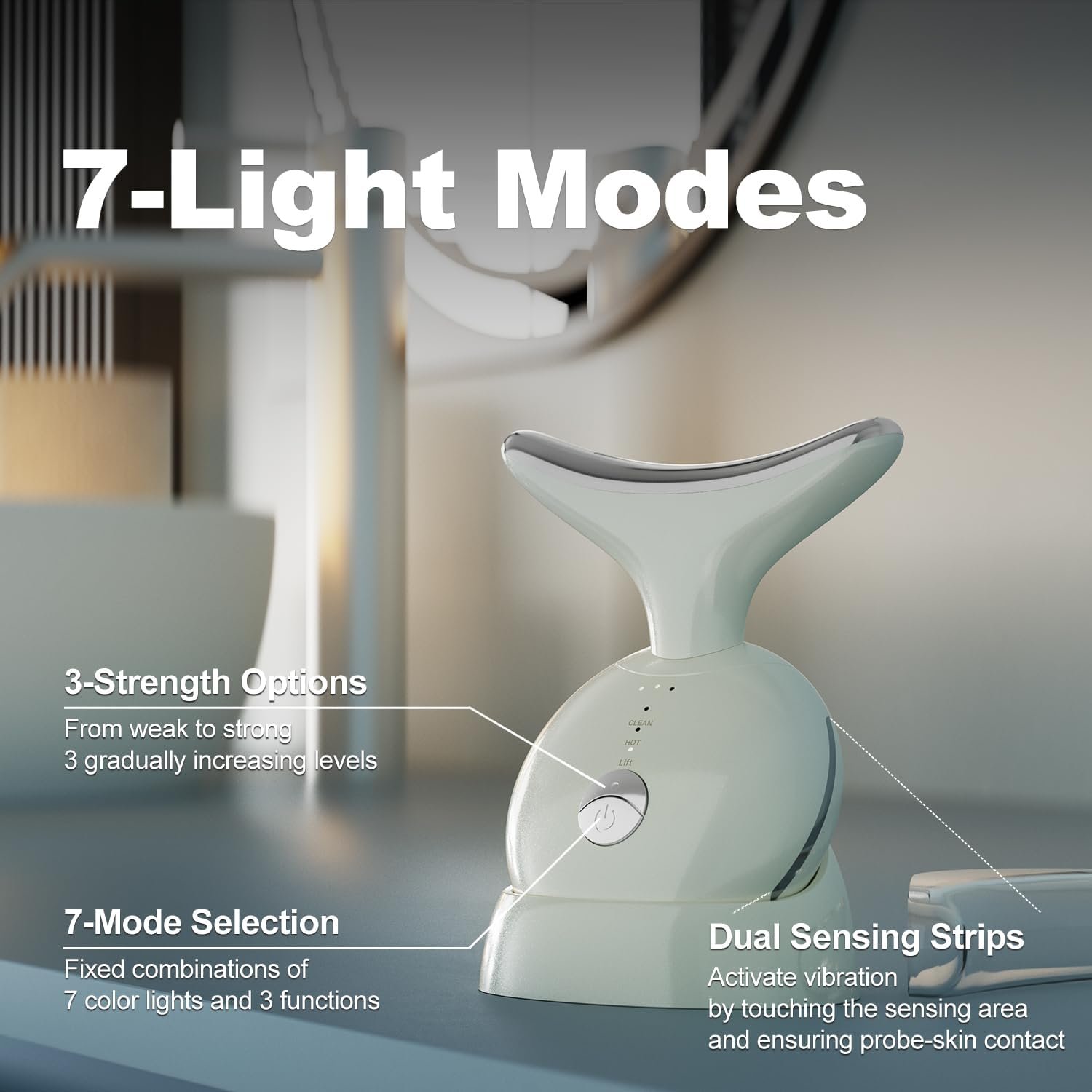 【Portable Size】This facial massager delivers professional-grade facial and neck care wherever you are. Its intuitive design allows effortless mode and light color adjustments with two button, ensuring a seamless and comfortable skincare experience. Enjoy your time anytime, anywhere.