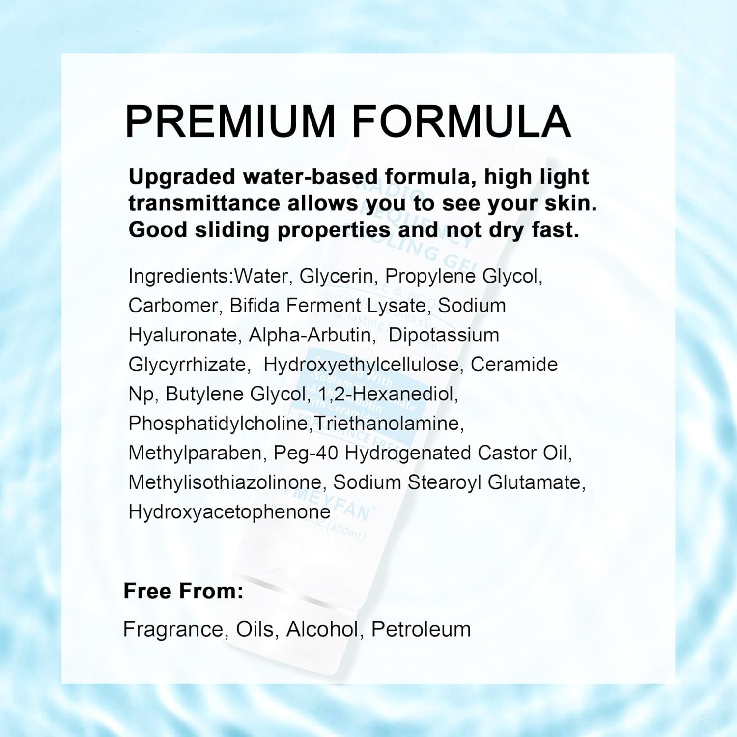 Best Value: Each 300ml tube of microcurrent conductive gel is only $6. Very cost-effective, suitable for beauty salon use, gifting to your friends, and family spa days. This upgraded formula primer gel is excellent for use with all types of facial microcurrent device, RF, Laser Hair Removal device