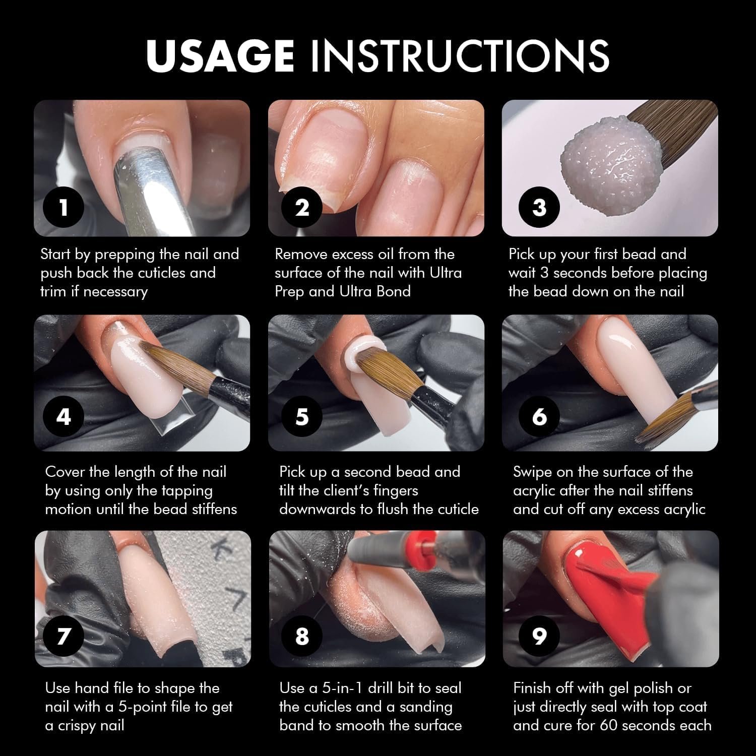 Superior adhesion: Trust in the superior adhesion of our acrylic cover powders to ensure your nail enhancements stay firmly in place. Engineered to promote optimal bonding with the natural nail and other acrylic layers, our powders minimize the risk of lifting, chipping, or peeling, allowing you to enjoy consistently flawless, long-lasting results. With enhanced adhesion, you can have confidence in the durability and resilience of your nail enhancements.