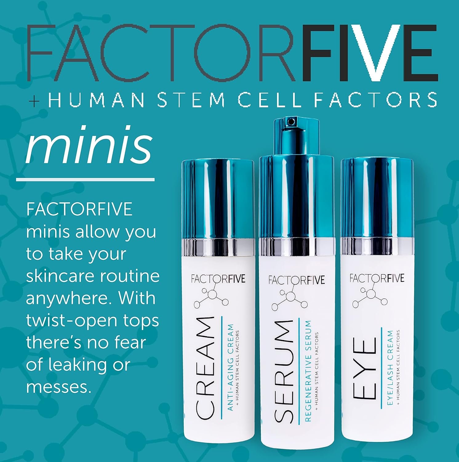 Biotechnology in a Bottle: All FACTORFIVE products utilize ethically-sourced, adipose-derived adult human stem cell growth factors to save you valuable time on your skincare routine and fight signs of aging– fine lines and wrinkles, sun spots, tightness, thickness, texture, and more.