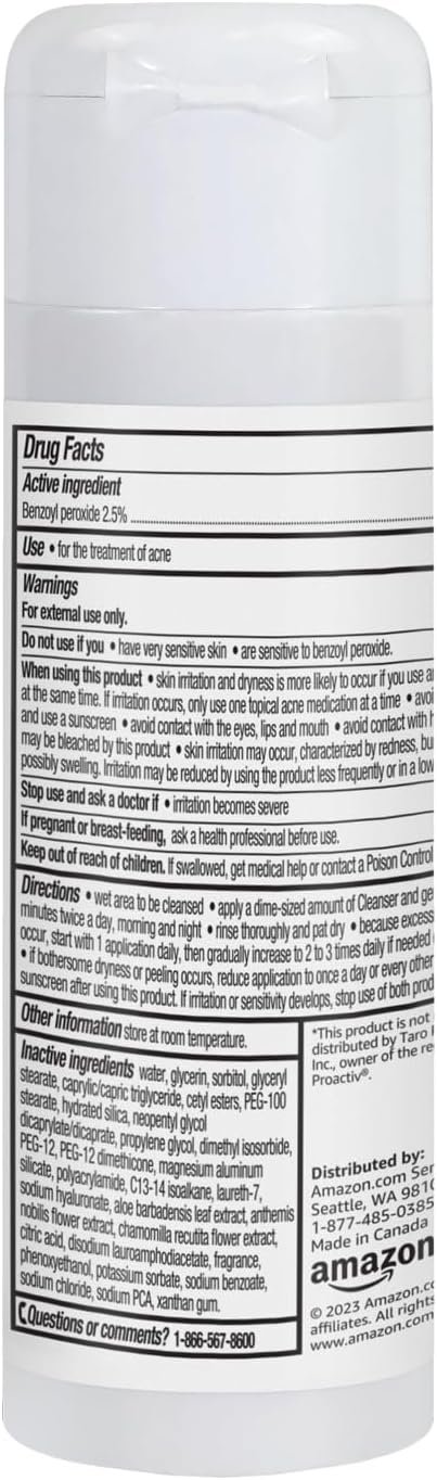Amazon Basics 3-Step Acne Remedy System Cleanser is formulated with 2.5% Benzoyl Peroxide to treat acne, while effectively washing away debris.