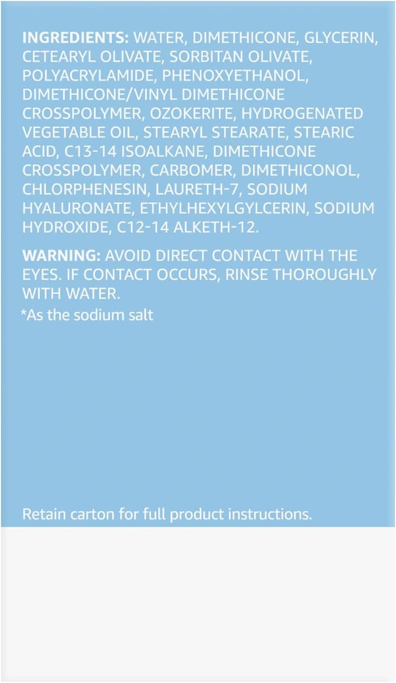 Amazon Basics Moisturizing Gel Eye Cream is formulated with Hyaluronic Acid as a hydrating agent, attracting water to retain your skin’s natural moisture.