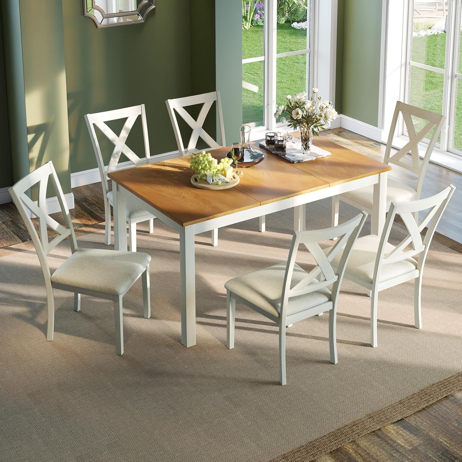 Be the first to review “AMERLIFE 7-Piece Farmhouse Solid Wood Dining Table Set with 6 Upholstered Chairs, 60″ Space Saving Dinner Table & Chairs Set, for Dining Room, Kitchen, Restaurant, Brown & White”