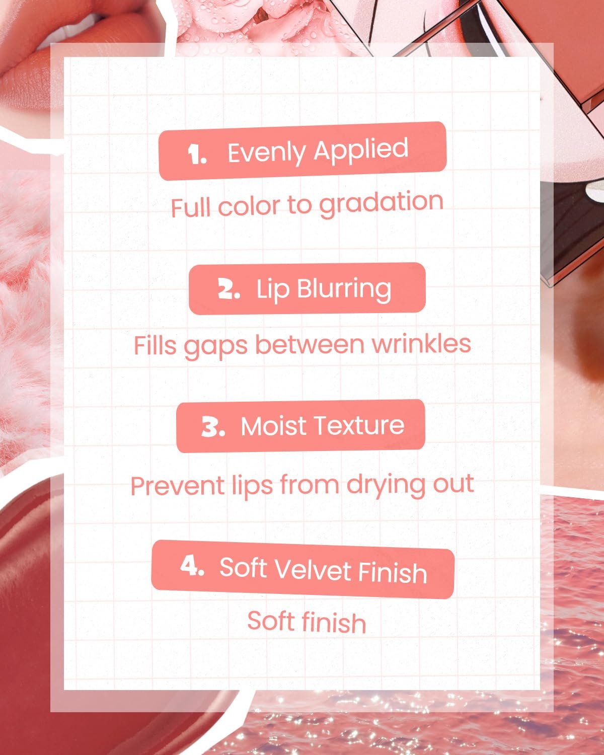 Velvet Blurred Finish: A natural-looking flush with just enough shine. It helps to maintain natural levels of moisture with the color stain.