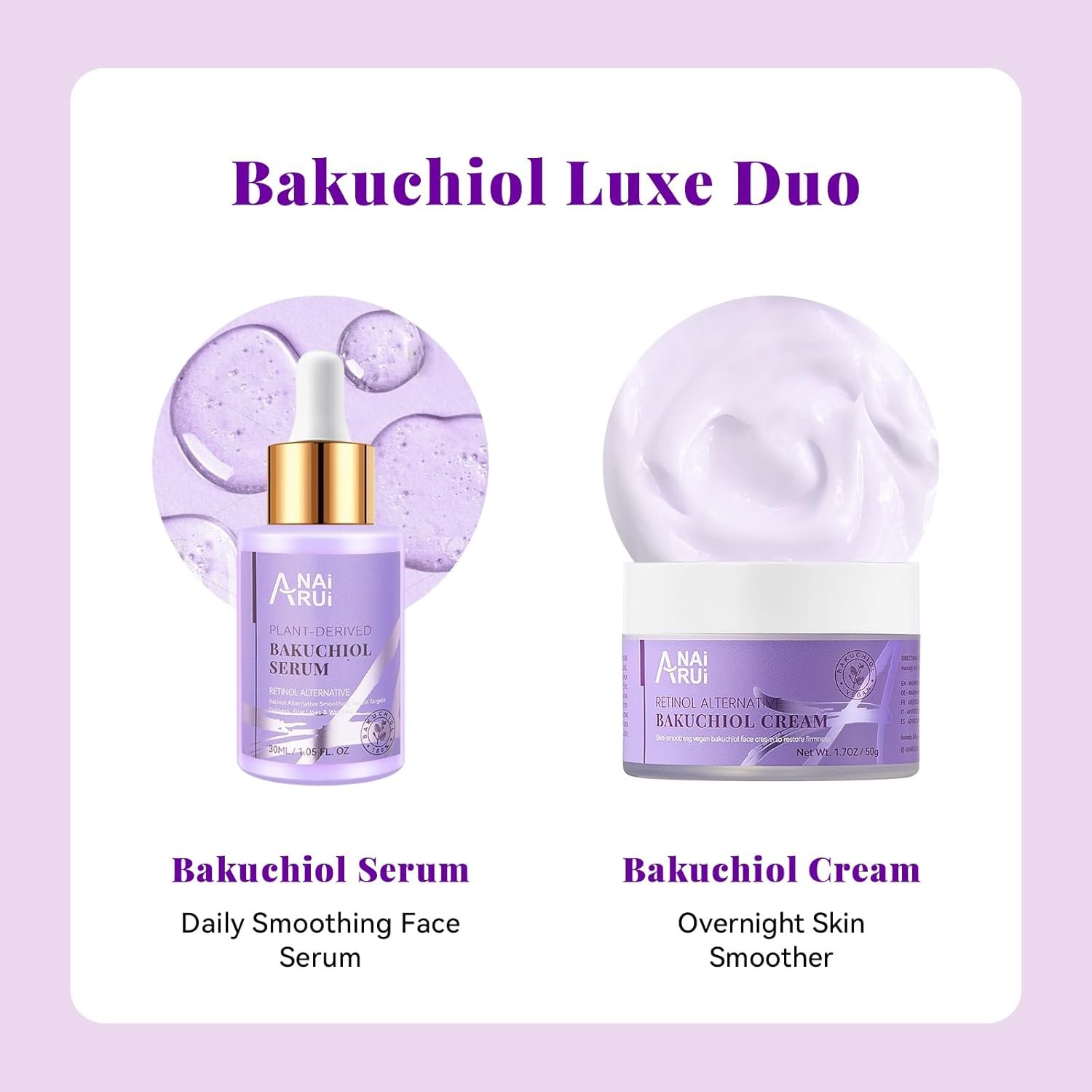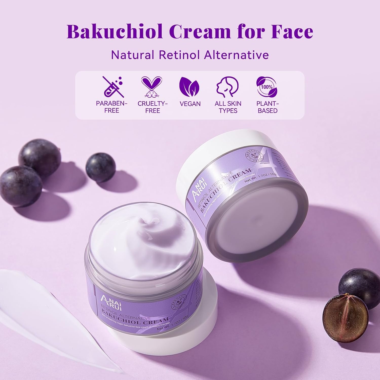 ANAI RUI Bakuchiol Face Cream is a plant-based, anti-aging moisturizer designed to intensely hydrate, help firm, and reduce the appearance of wrinkles without irritation. Ideal for those seeking a natural alternative to retinol, this daily face cream promotes a healthy-looking