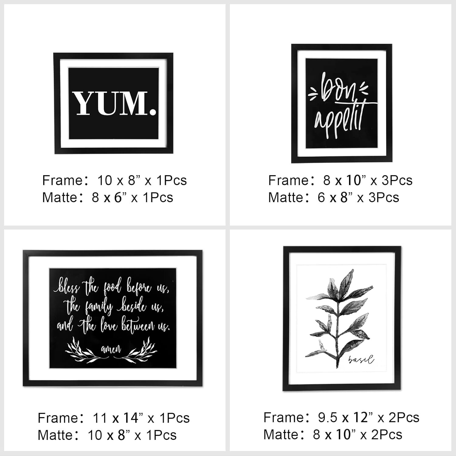 multiple Size: This gallery wall frames includes 7 pack multiple size frames: 11″x14″x1pcs – 10″x8″x1pcs – 8″x10″x3pcs – 9.5″x12″x2pcs without mat, 10″x8″x1pcs – 8″x6″x1pcs – 6″x8″x3pcs-8″x10″x2pcs with mat