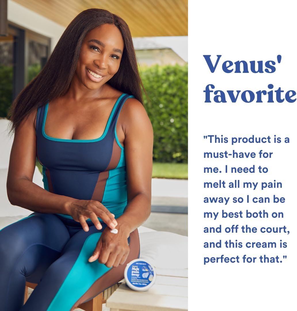 GET VENUS WILLIAMS’ GO-TO FOR WARMUP & RECOVERY: “I love this product because I need to be my best on the court. It’s got magnesium and MSM to help recover after training or warm up before. And it smells incredible!” – Venus Williams.