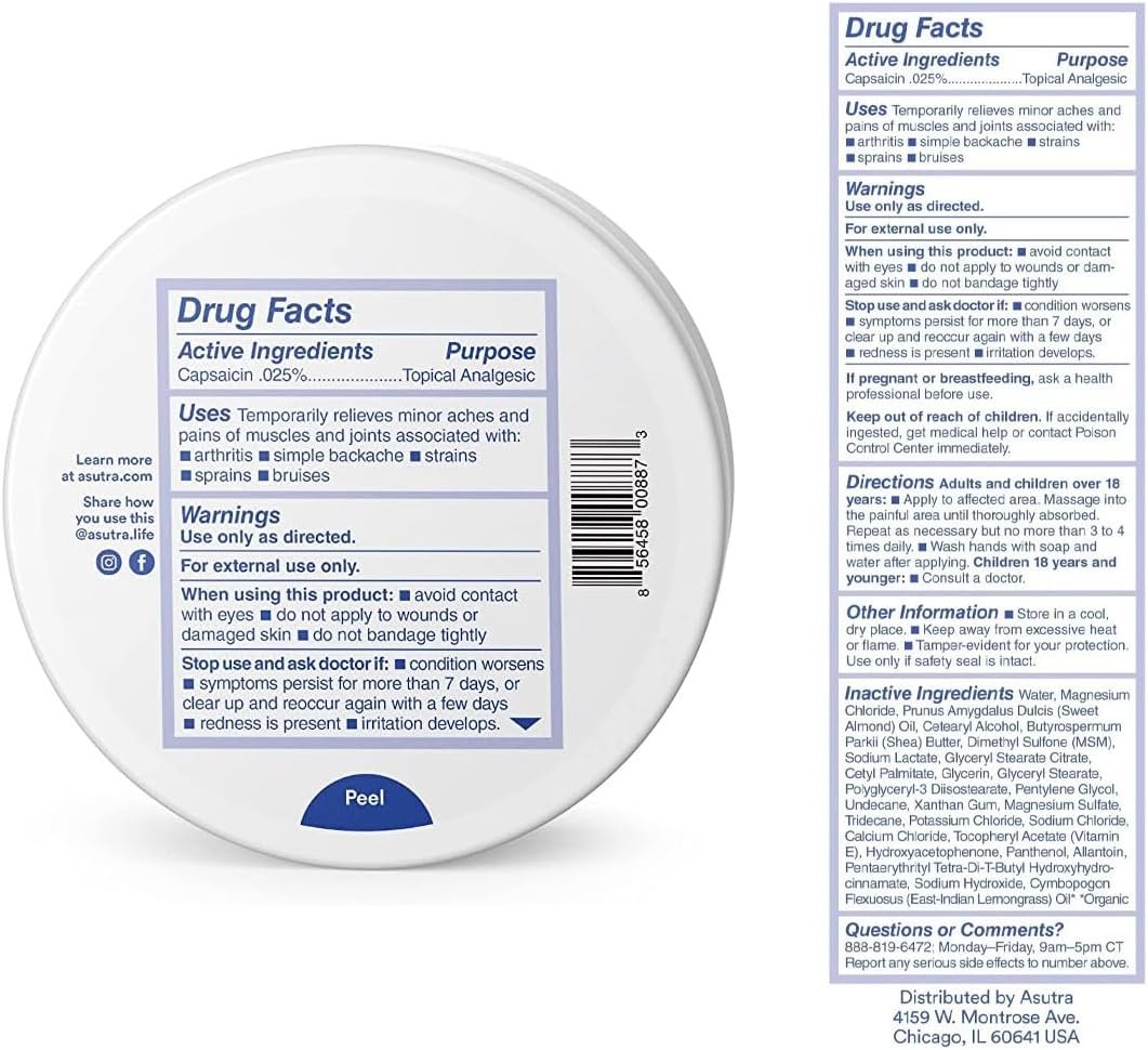 WARMING RELIEF: This body butter features capsaicin (derived from chili peppers) that provides gentle warming relief which temporarily relieves minor aches and pains.