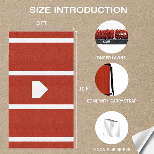 Specification: Baseball Batting Mat 10’x5′ Hitting Mat, Indoor/Outdoor Portable Baseball Hitting Mat for Batting Cage, Antifade Batters Box Turf Mat Baseball with Anti-Slip Spikes 8pcs