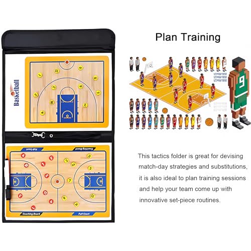Specification: Basketball Coaching Board Premium Tactical Clipboard Two Sides with Full & Half Court Marker Board Portable Strategy Board with Dry Erase, Marker Pen and Foldable and Portable Basketball Tactics Board