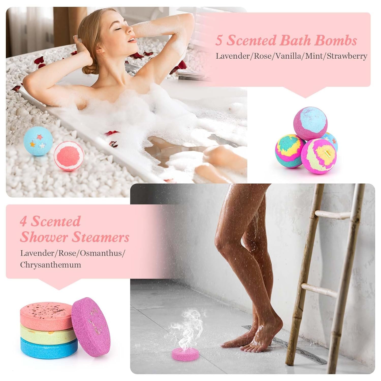 💌【Gift with Special Meaning】The moisturizing hand cream can protect her hands in the long and cold winter, so that she will no longer be troubled by dryness; the full bath bath bombs and shower steamers let her enjoy two different home spa experiences and improve her skin. At the same time, she can enjoy a leisurely and relaxing bath time in a fresh fragrance atmosphere to celebrate special occasions. This is definitely a very good gift choice.