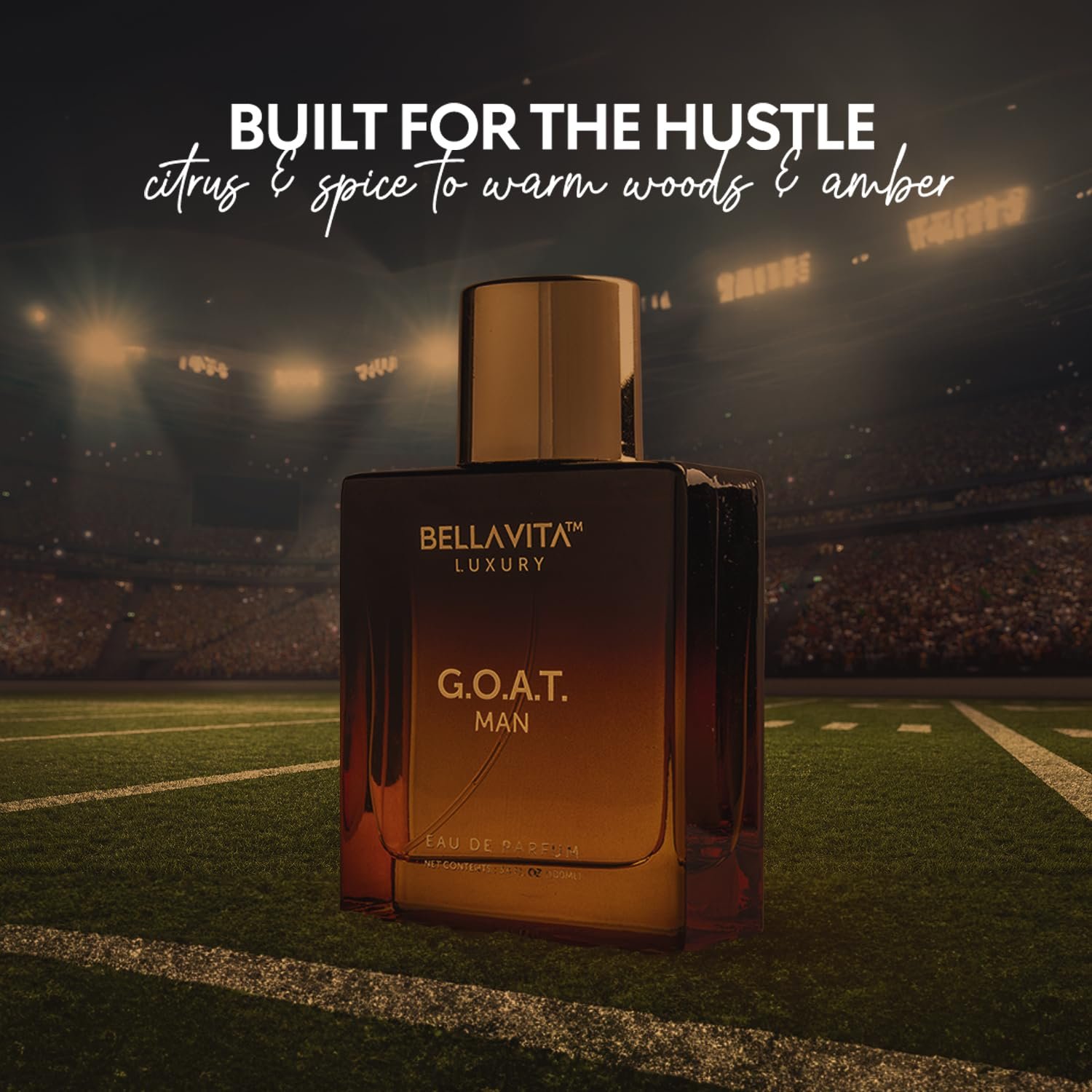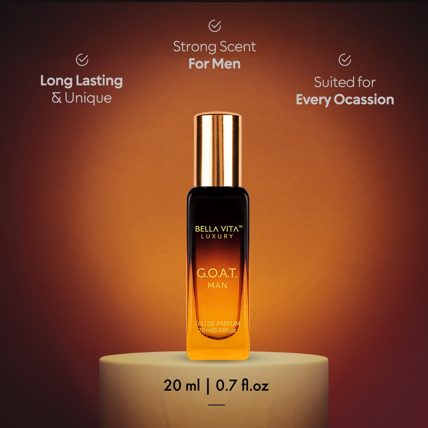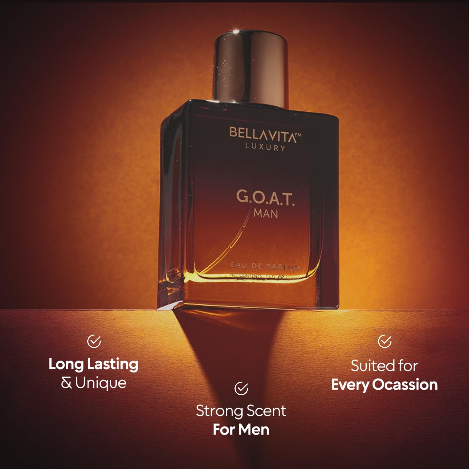 “BellaVita Luxury G.O.A.T. Men’s Eau De Parfum is the ultimate fragrance for the modern man who strives for greatness. Designed for those who demand confidence, strength, and sophistication, this cologne for men blends invigorating Bergamot, soothing Lavender, and deep, earthy Patchouli Oriental notes to create a scent that is bold yet refreshing. Ideal for sports and gym enthusiasts, this mens cologne keeps you smelling fresh and energized throughout the day. The long-lasting formulation ensures that whether you’re working out, heading to the office, or enjoying a night out, your scent remains powerful and captivating. Infused with pheromone cologne for men, this fragrance enhances attraction and leaves a lasting impression. Crafted for versatility, BellaVita G.O.A.T. is perfect for both casual and formal wear. A touch of vanilla perfume adds warmth and balance, making this perfume for men an irresistible combination of strength and elegance. Whether you’re looking for a daily signature men cologne or a special occasion fragrance, this Eau De Parfum is the perfect addition to your grooming routine. Elevate your presence with BellaVita Luxury G.O.A.T., the cologne for men that defines confidence, endurance, and timeless appeal.”