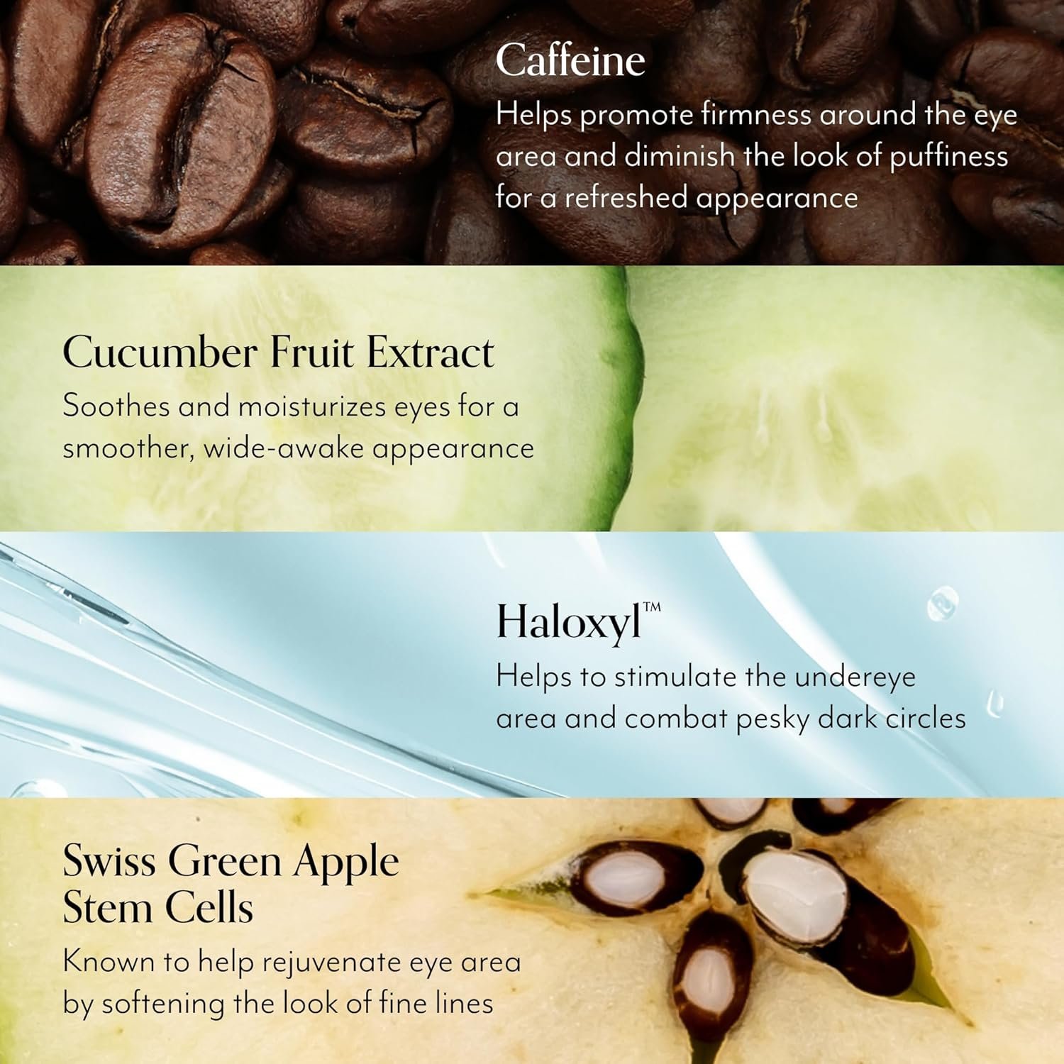 CAFFEINE, PEPTIDES AND PLANT STEM CELLS help smooth and firm to reduce the look of puffy, tired eyes