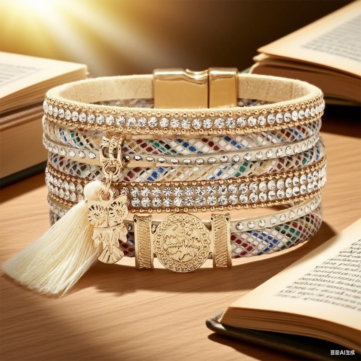 This women’s bracelet is like a delicate work of art, exuding a charming allure. The overall design is fashionable and elegant, suitable for wearing in various occasions. The bracelet is adorned with numerous dazzling crystals. These crystals are exquisitely cut, with each facet precisely refracting light. Under different lighting conditions, they sparkle with a kaleidoscope of colors, resembling the stars in the night sky, lively and enchanting. The crystals are of pure and flawless color, adding a touch of nobility and splendor. The chain part of the bracelet features a unique weaving technique, with smooth lines that are tight and sturdy. This weaving method not only enhances the bracelet’s aesthetic appeal but also improves its wearing comfort, without causing any irritation to the skin. The length of the chain can be slightly adjusted according to personal preference to ensure a perfect fit around the wrist, showcasing a just-right sense of refinement. The clasp of the bracelet is small and exquisite, equipped with a secure and reliable strong clasp for easy wearing and removal. Whether during casual leisure time or important social events, this women’s bracelet can become a highlight of the outfit, demonstrating the wearer’s unique taste and elegant demeanor. It is an excellent gift choice, suitable for giving to a best friend, a lover, or oneself, allowing every woman who possesses it to feel boundless beauty and confidence.
