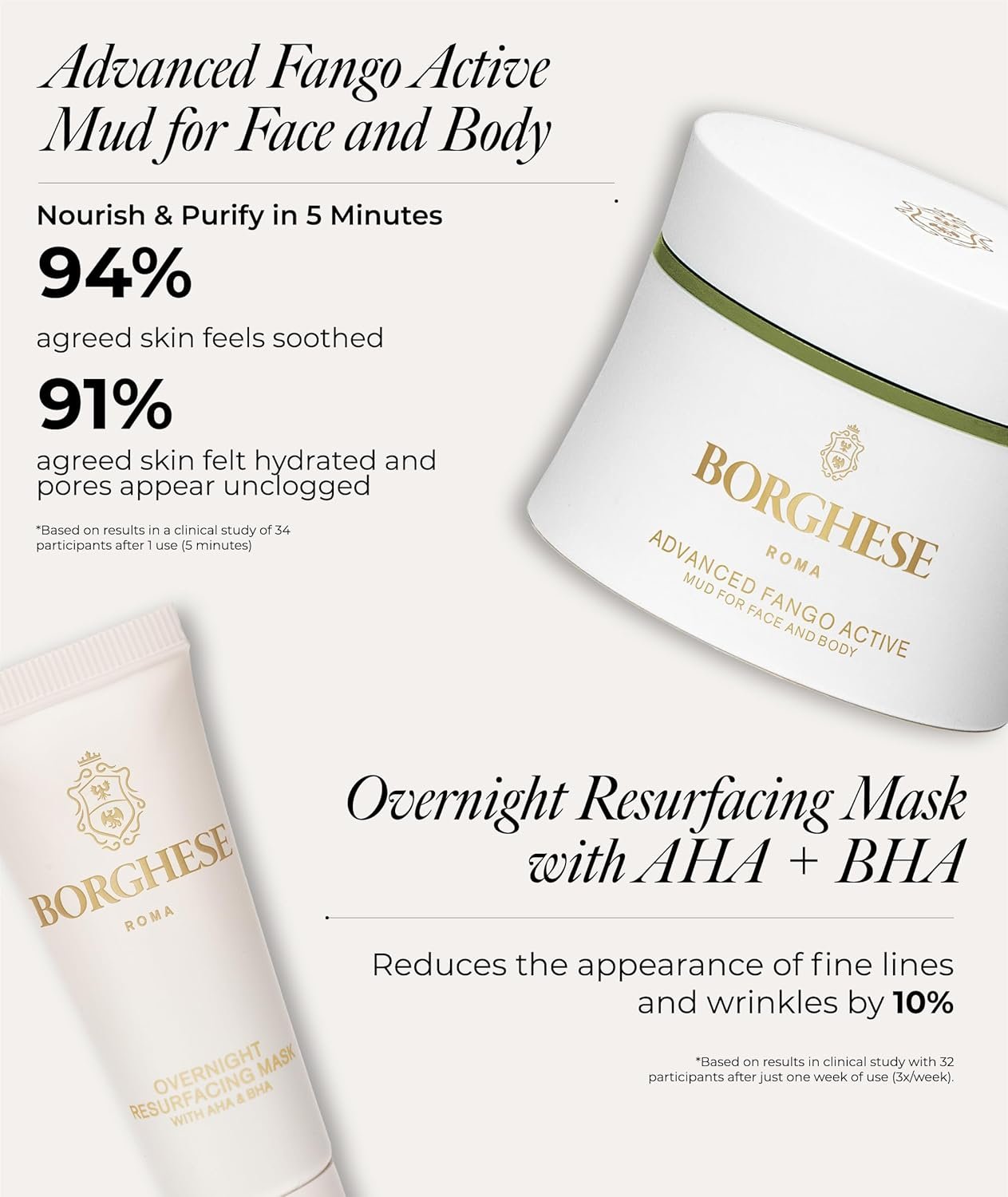 Be the first to review “Borghese Skin Renewal Discovery Set – Includes Cream Cleanser, Pre-Mask Booster Serum, Mud Mask for Face & Body, Firming Mask & AHA BHA Overnight Mask”