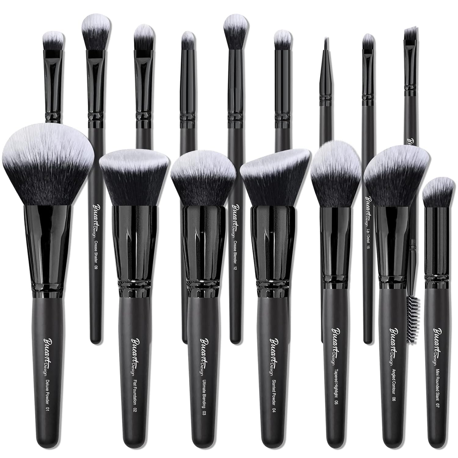 Bueart Design 19Pcs ULTRA SOFT Black labeled DENSE HAIR Makeup Brushes set Contains large powder Flat Foundation Ultimate Blending Make up Brush set Blush Face Brush Concealers contour Eyeshadow