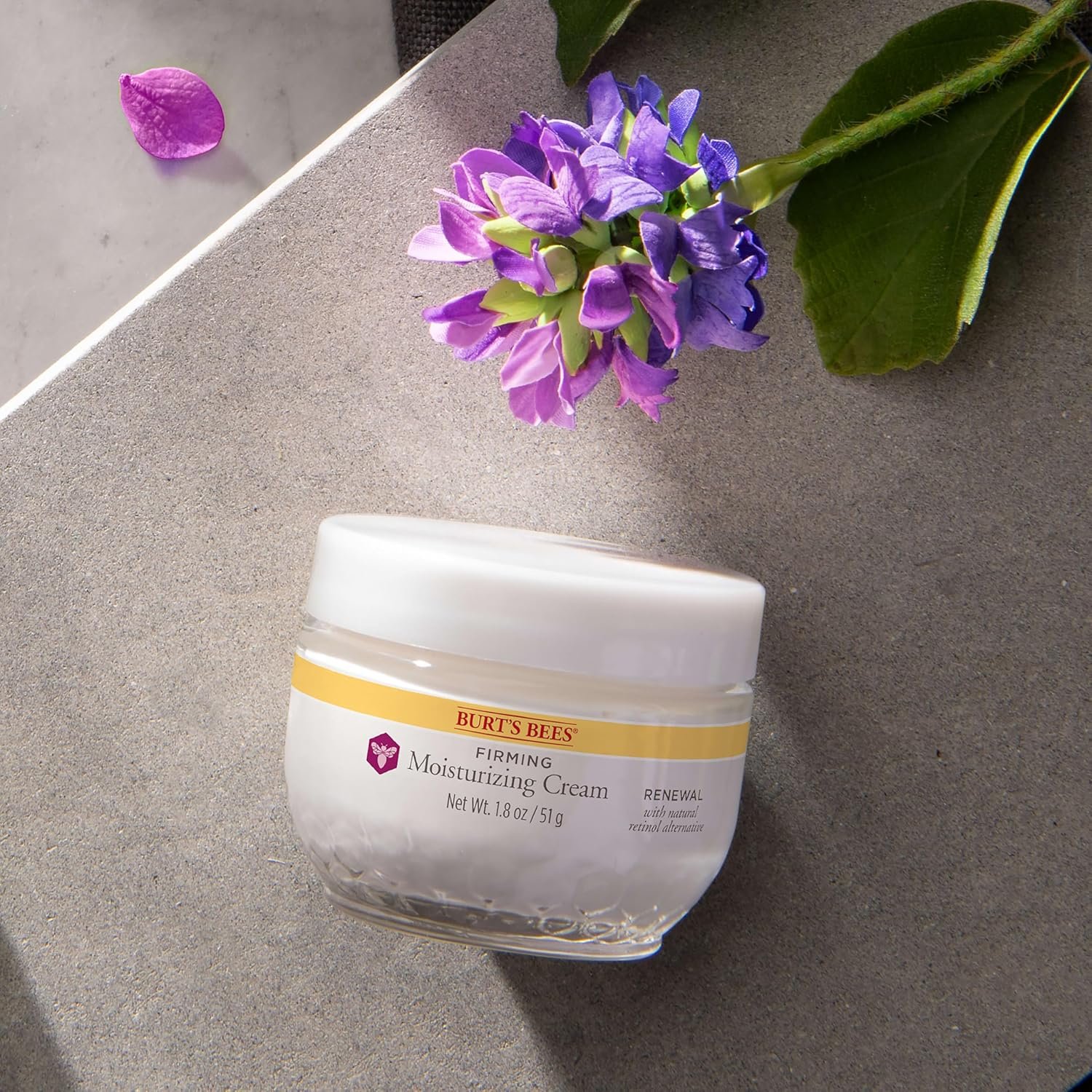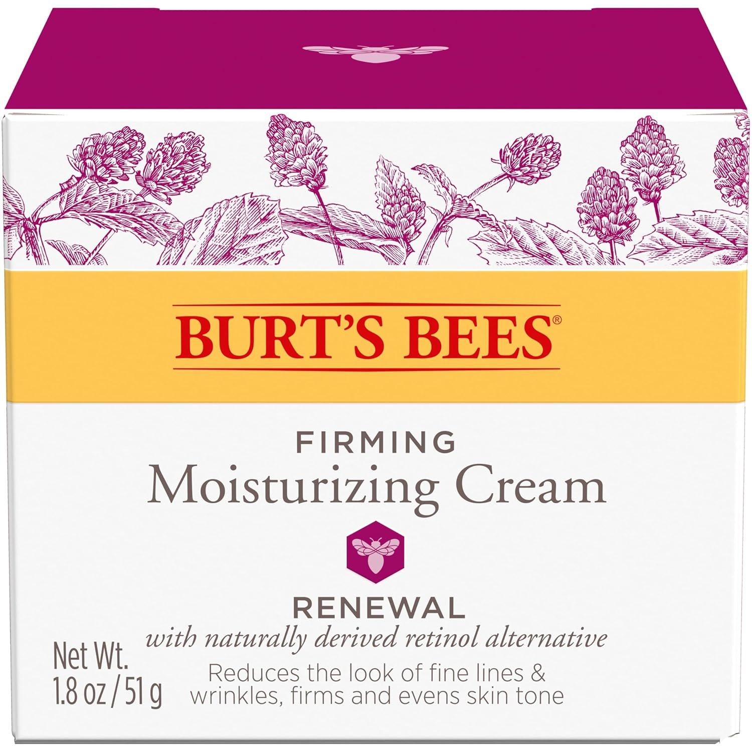 NOURISHING INGREDIENTS: One 1.8 oz. tub of Burt’s Bees Renewal Firming Moisturizing Face Cream With Natural Retinol Alternative