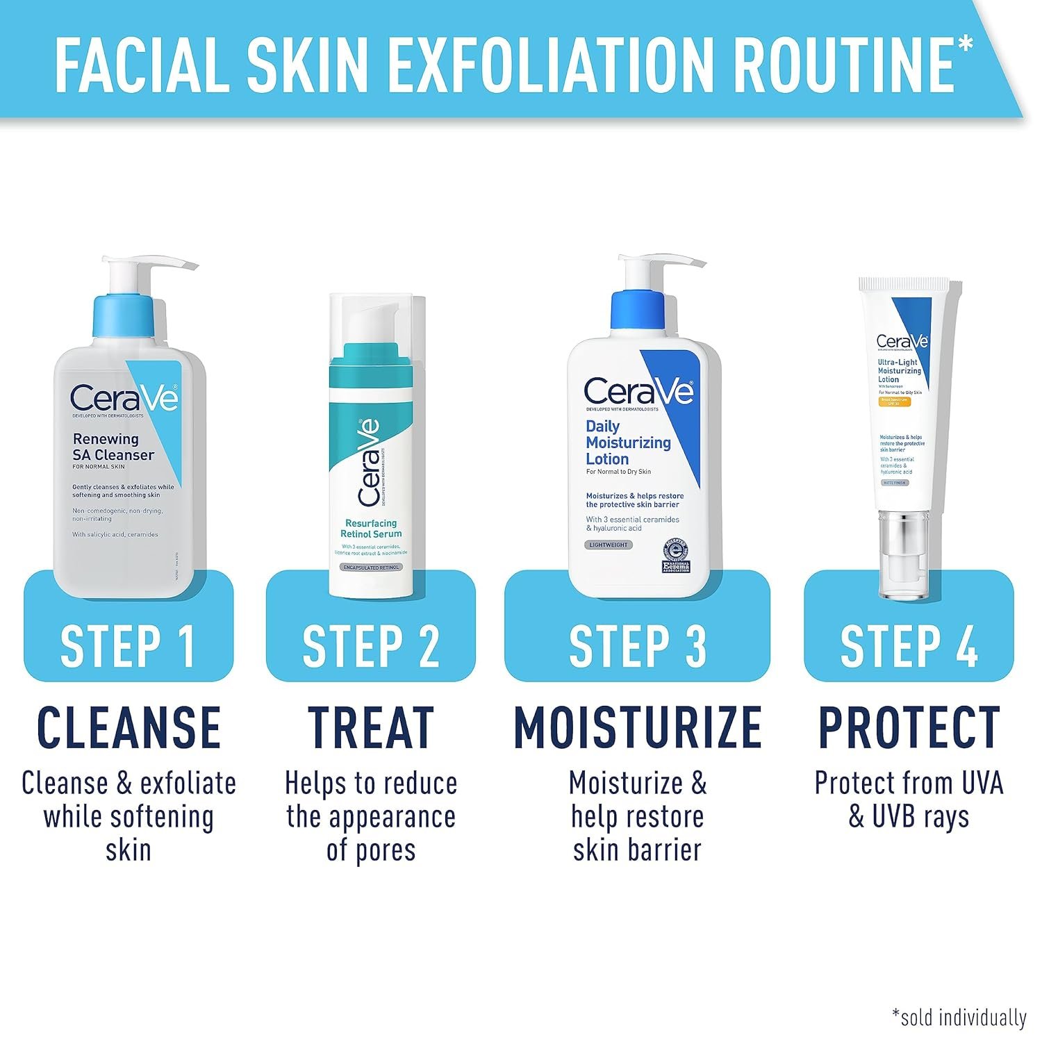 Developed with dermatologists, CeraVe Renewing SA Cleanser is a gentle face cleanser that effectively exfoliates and detoxifies, removing dirt and oil without drying the skin. This foaming face wash is free from harsh exfoliants like beads or grains, ensuring a gentle cleanse suitable for face and body use, including on acne-prone skin. Its non-comedogenic, fragrance-free formula is designed to be gentle and non-irritating. Salicylic acid exfoliate for face helps to smooth and soften the skin by removing dead skin cells. Free from harsh particles, this gentle cleanser for skin, making it ideal for sensitive skin types. It transforms into a foaming gel that cleanses while being gentle on the skin. Hyaluronic acid attracts moisture to the skin, while Vitamin D provides antioxidant protection. Ceramides help restore and maintain the skin’s natural barrier, crucial for overall skin health. Niacinamide aids in calming the skin, making this cleanser suitable for daily use. This face wash for women is designed to meet the needs of various skin types, ensuring effective cleansing and exfoliation while maintaining skin health and moisture. •Non-comedogenic •Fragrance-free •Gentle, non-irritating formula Key Ingredients: •Salicylic Acid: Exfoliates for soft, smooth skin •Vitamin D: Provides antioxidant protection •Ceramides: Essential for healthy skin, ceramides help restore and maintain the skin’s natural barrier •Hyaluronic acid: This ingredient attracts hydration to the skin’s surface and helps the skin retain moisture •Niacinamide: Helps calm skin.