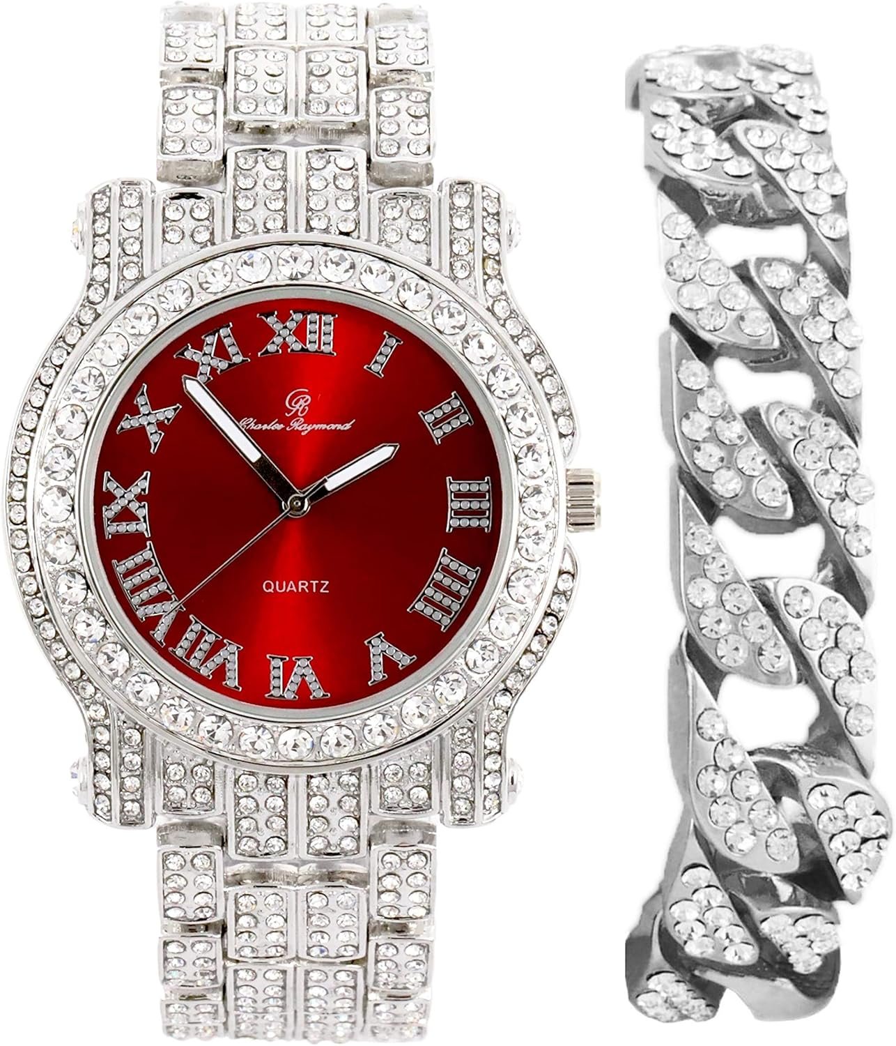 Be the first to review “Charles Raymond Bling-ed Out Silver Round Luxury Mens Watch w/Bling-ed Out Bracelet – L0504B”
