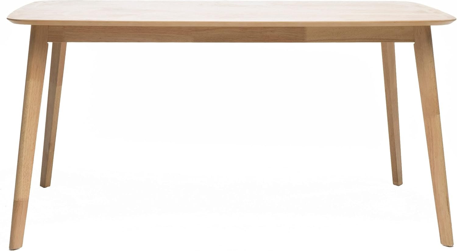 This sleek dining table is a great addition for any home. With smooth lines and a slightly rounded edge, not only does this dining table look Smooth and welcoming, it allows you to eat in peace, not worrying if your table is going to look shabby while you have friends and family over. Plus, enjoy the added benefit of having a gorgeous finish to boast about. Includes: one (1) table material: MDF (medium-density fiberboard) and walnut veneer leg Material: solid rubberwood finish: Natural Oak some assembly required Dimensions: 35. 43 inches deep x 59. 06 inches wide x 29. 53 inches high.
