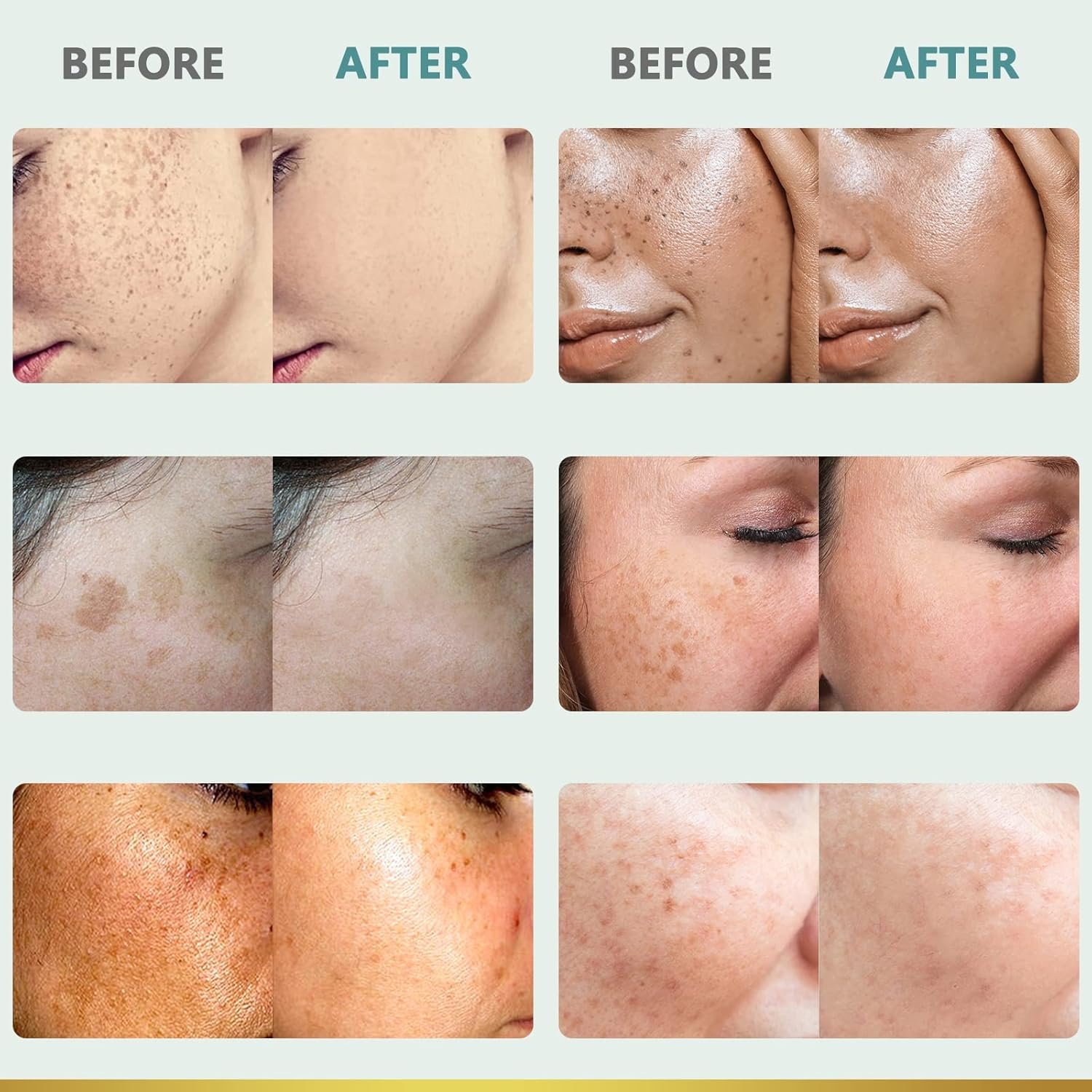 💚Obvious Results – 1. Around 1-2 weeks to improve texture and give a more even tone. 5-6 weeks to dissolve melanin and reduce spots, and obvious results could be seen usually in 7-8 weeks (1 bottle); 2. It takes longer time (around 2-3 months) for people with thick stratum corneum to see obvious results.
