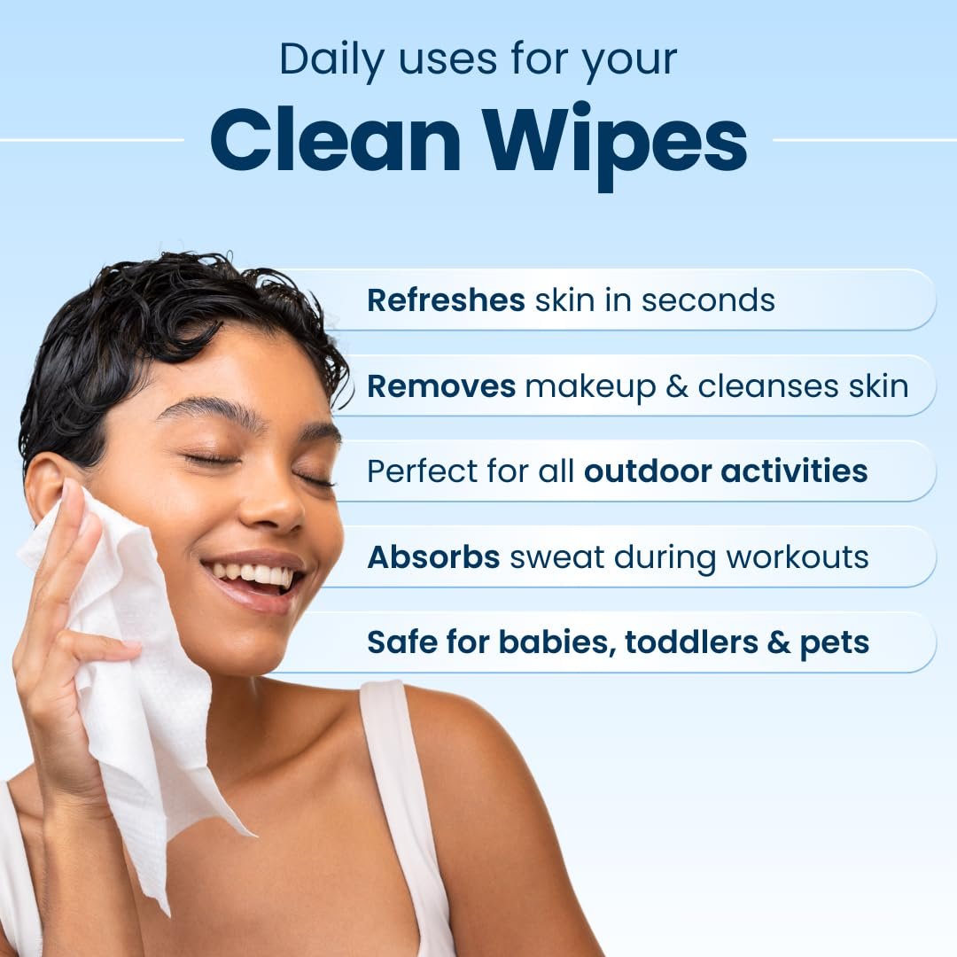 One step facial cleanser, makeup remover – The unique big size cleansing wipe from Clean Skin Club is the perfect Facial Cleanser, Make up Remover, Acne Treatment, Pore-clogging dirt, sweat, oil and environmental toxins, sunscreen, eye lid wash, and even the most stubborn mascara, leaving your skin revitalized, rejuvenated and soft, without rinsing.