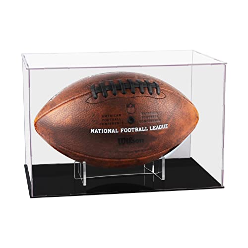 Clear Football Display Case,Memorabilia Display Box Cases for Football or Memorial Sports Gloves,with Steel Brackets Hanger & Removable Interior Football Display Stand(11.8×7.9×7.9 inch; 30x20x20 cm)