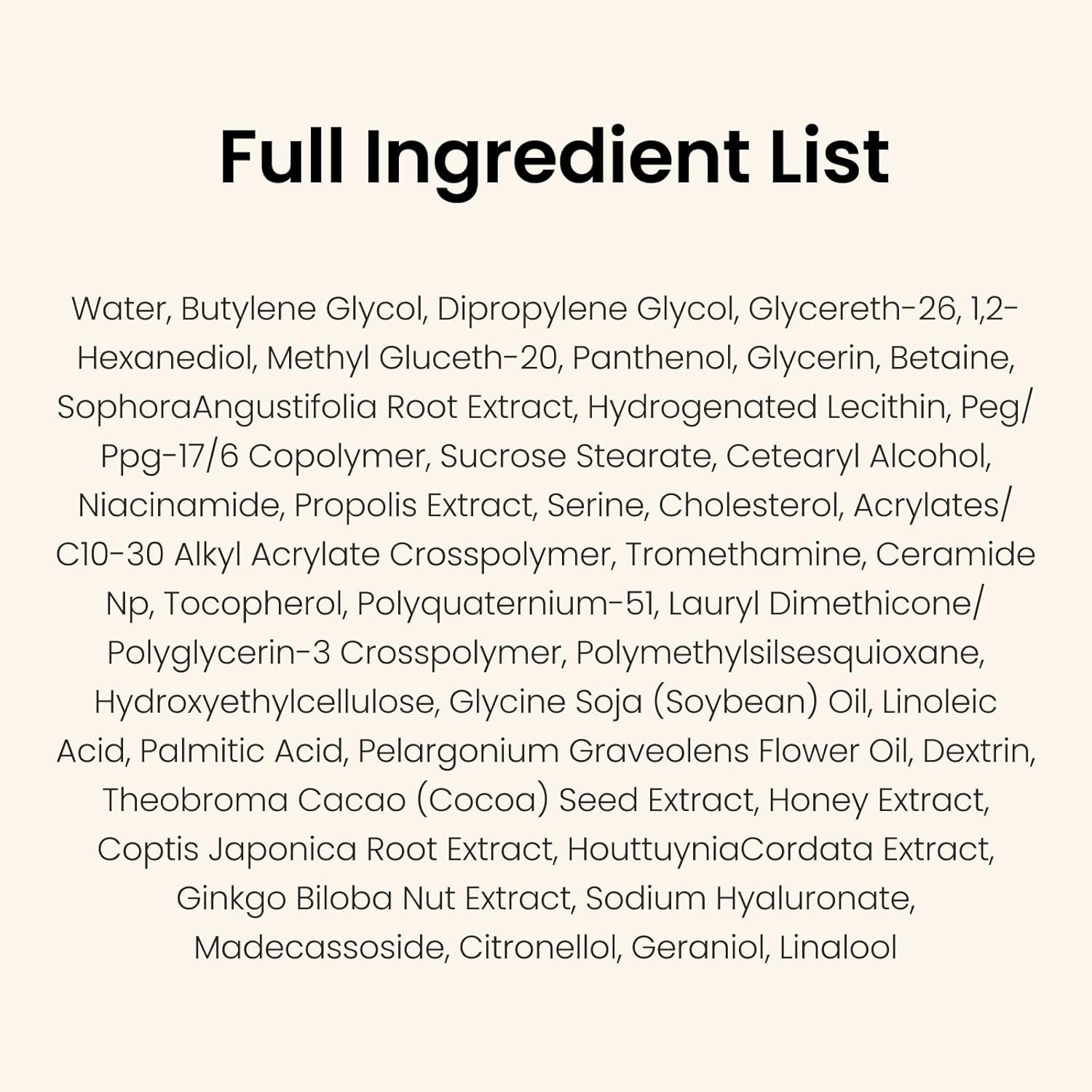 [KEY INGREDIENTS] Formulated with 1,000 ppm propolis extract, effective in soothing and nourishing the skin. Also infused with amino acids and ceramides for hydrating care, and madecassoside for soothing care.