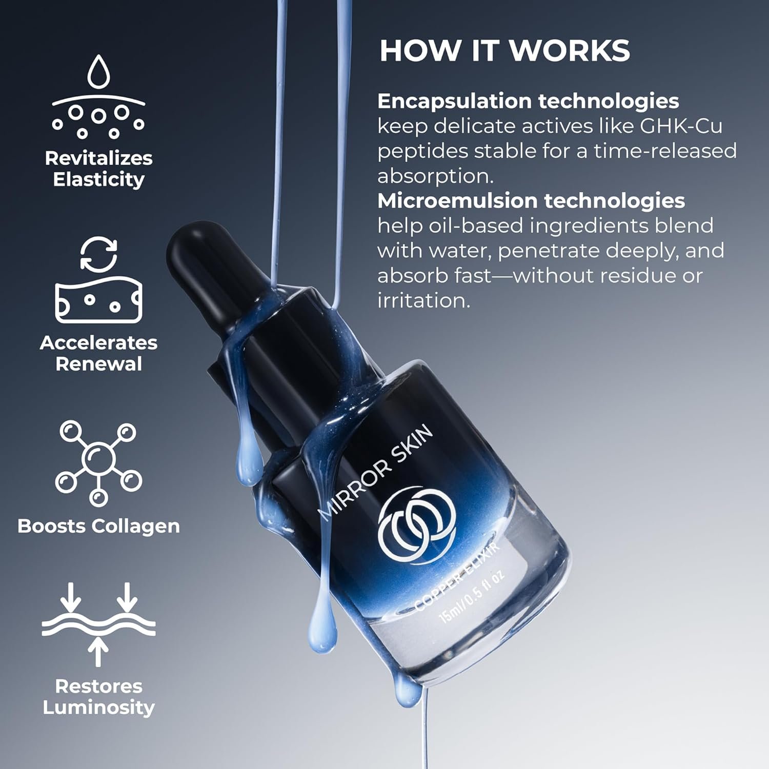 How To Use – Use your MIRROR SKIN peptides serum for face twice daily, once in the morning and once at night. Apply enough to lightly cover your entire face, gently tapping into the skin. Feel free to pair with a sunscreen for face.