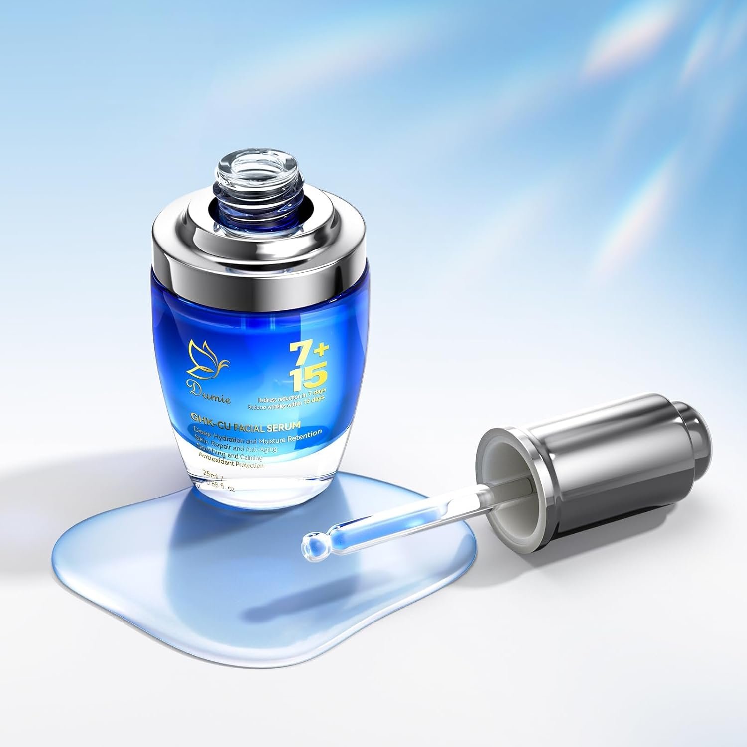Dumie Copper Peptide Serum, enriched with advanced copper peptide ingredients, focuses on anti-aging benefits, eliminating redness in 7 days and wrinkles in 15 days.