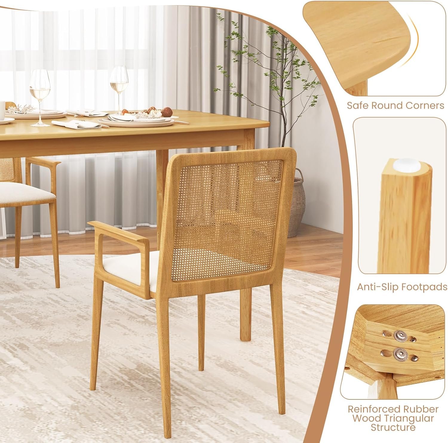 [Strong & Sturdy Structure] Thanks to sturdy wood structure, the dining table has strong loading capacity up to 330 lbs/150 kg. Besides, reinforced triangular structure will also enhance overall sturdiness and stability. Plus, non-slip foot pads can increase stability and protect your floor from scratches.