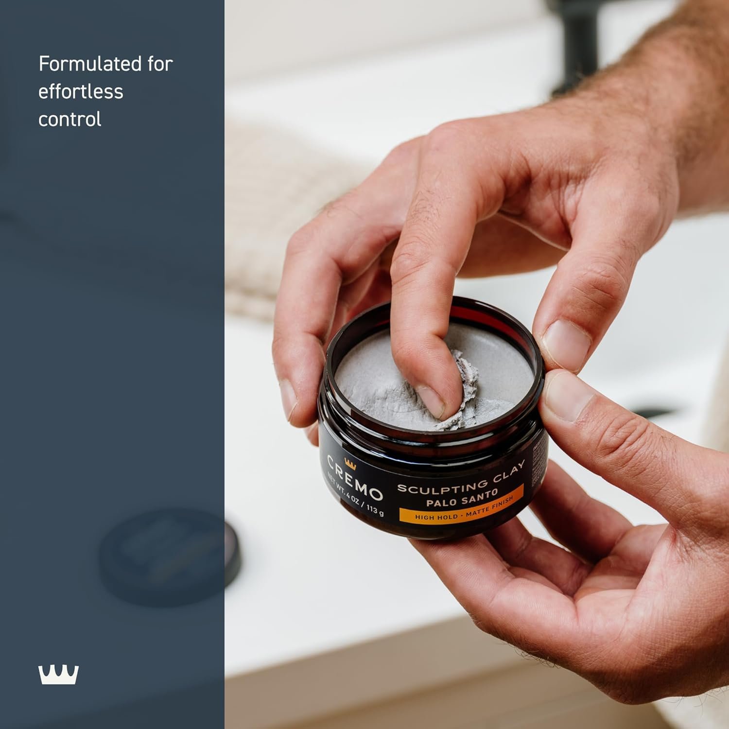 High hold. Matte finish. Designed with our premium Palo Santo scent, featuring notes of Bright Cardamom, Dry Papyrus and Aromatic Palo Santo. Take control of your style with this pliable clay that offers the flexibility to reshape throughout the day. This premium formula is designed with Kaolin Clay, which helps to provide that long-lasting hold with a natural-looking finish. It’s what top barbers and discerning gentleman trust to achieve a subtle, yet put-together look. For all hair types.