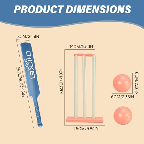 Specification: Cricket Bat Kids Cricket Set, Cricket Kit with ABS Cricket Bat, Cricket Stumps, 2 Balls Parent Child Interaction Game for Garden Beach Home Cricket Equipment for Children Ages 3+