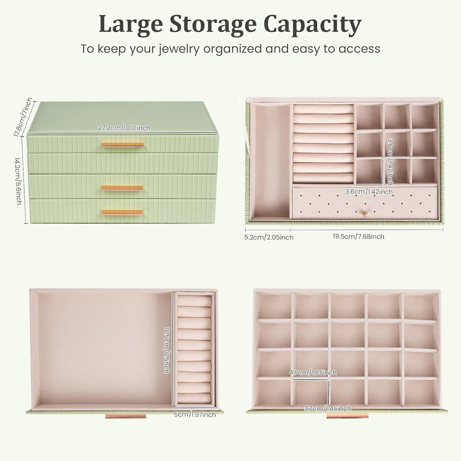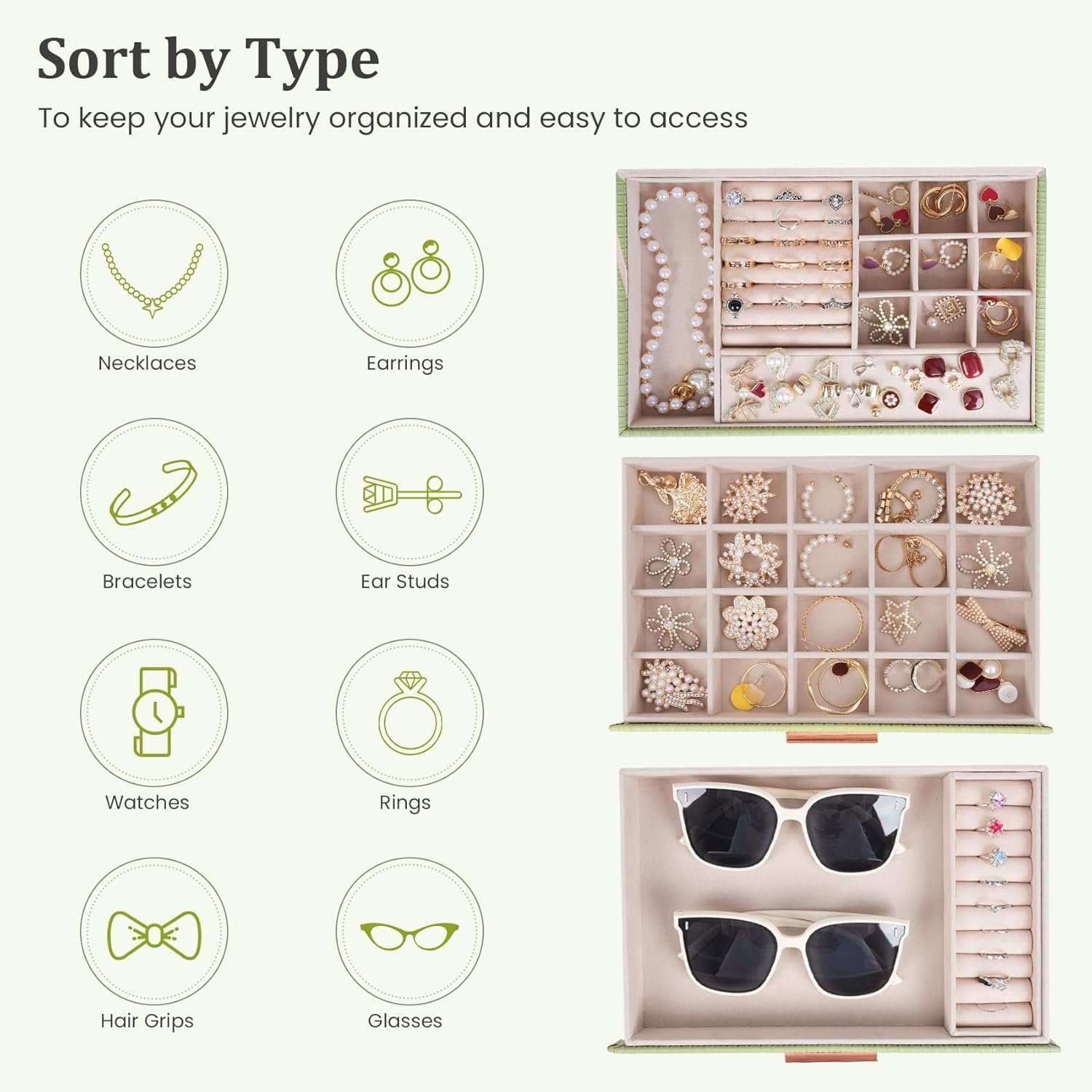 Dajasan Jewelry Organizer Box, Jewellery Boxes for Women, 3-Tier Jewelry Storage Organizer for Earring, Ring, Necklace, Bracelets (Avocado Green)
