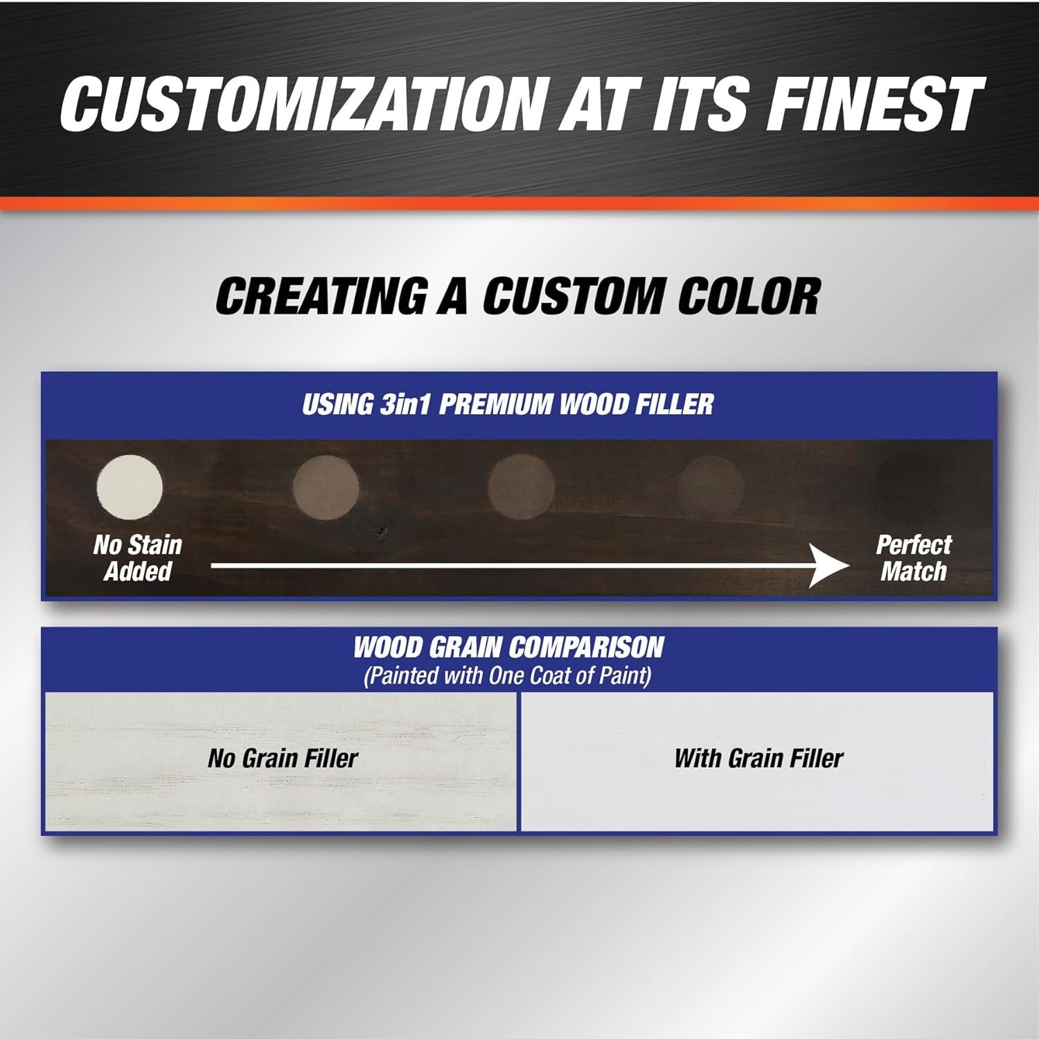 Wood filler features Chameleon Color Blend Technology that provides ability to mix stains, paints, pigments and other top coats directly into the wet state for an exact color match