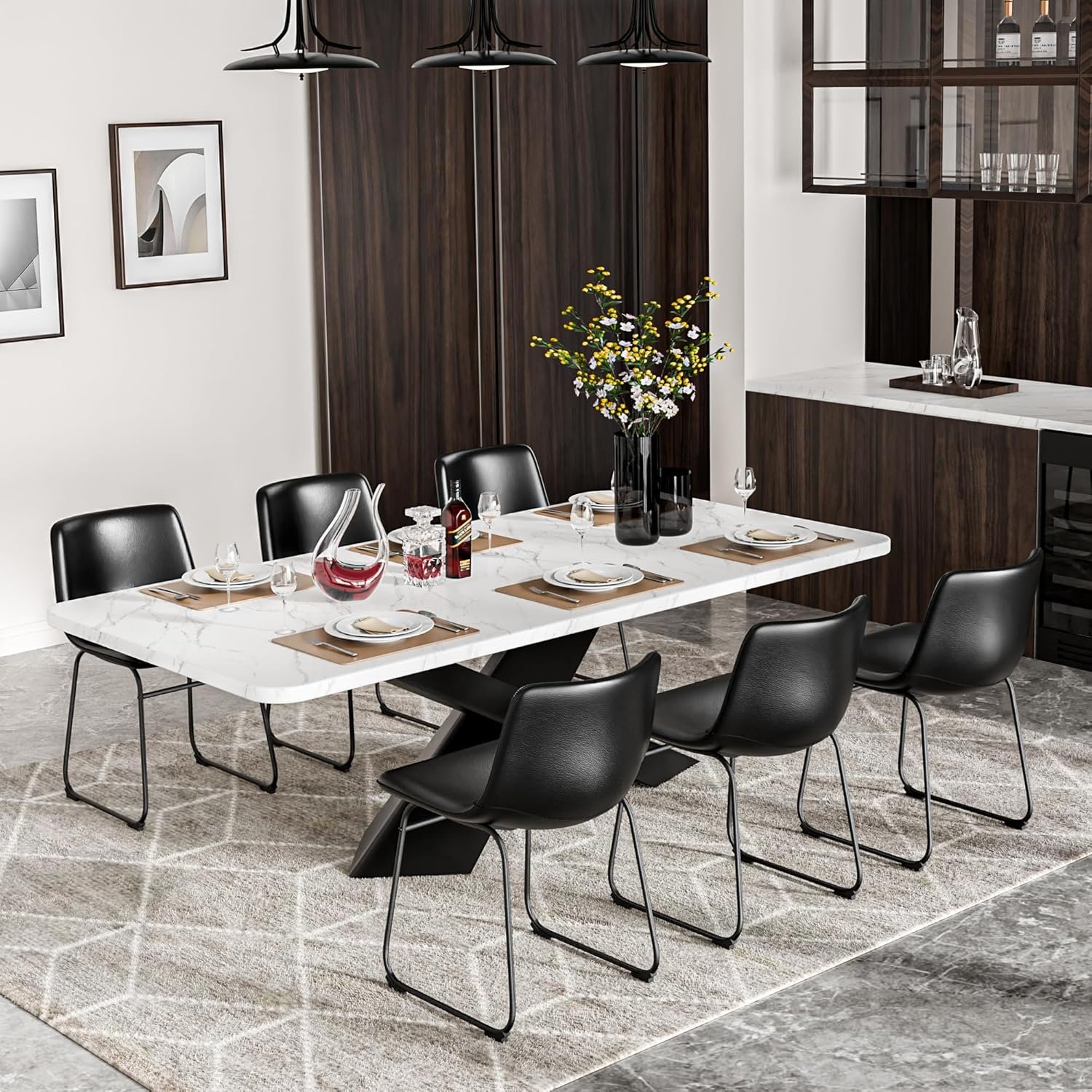 [Sturdy and Cozy]: Constructed with stable black powder-coated tubular metal frames, these modern dining chairs have a loading capacity of up to 300 pounds. The ergonomic backrest and comfortable seat provide ample support for extended periods of sitting.