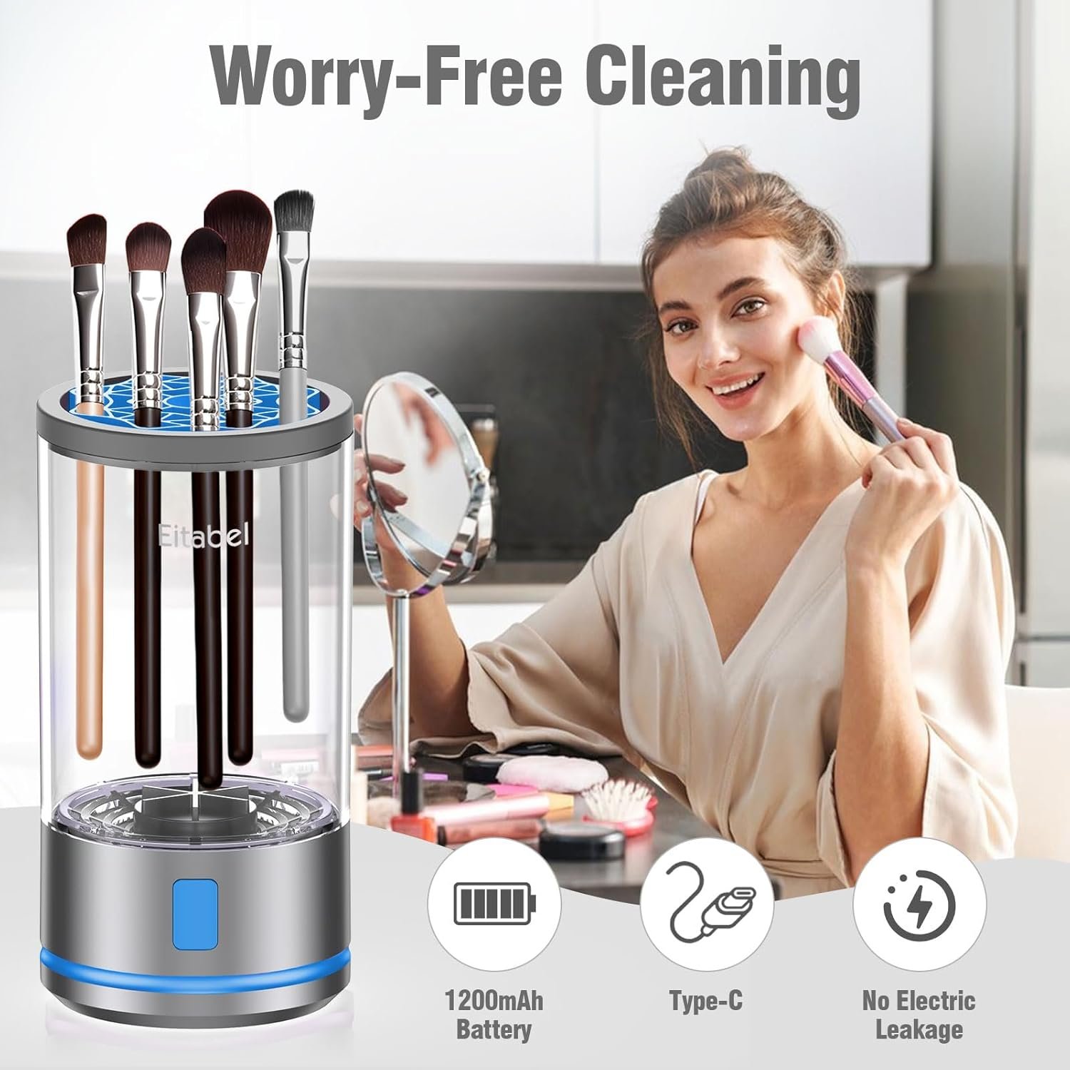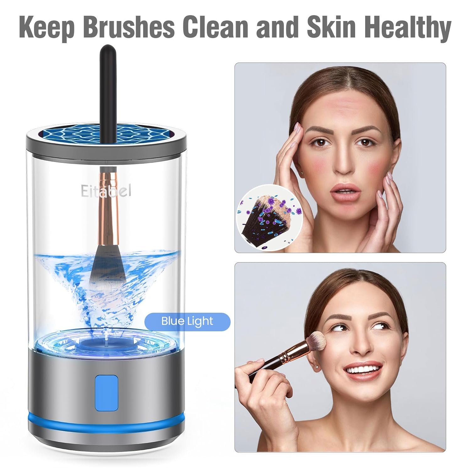 💖【Spin Your Way to Clean】A true lifesaver for anyone who washes brushes. Dermatologists recommend cleaning your cosmetic brushes at least weekly, if not daily—say goodbye to breakouts and dirty! Our upgraded automatic electric cleaner effortlessly removes makeup residue and cosmetic buildup, leaving your brushes fresh and ready for your next beauty routine.