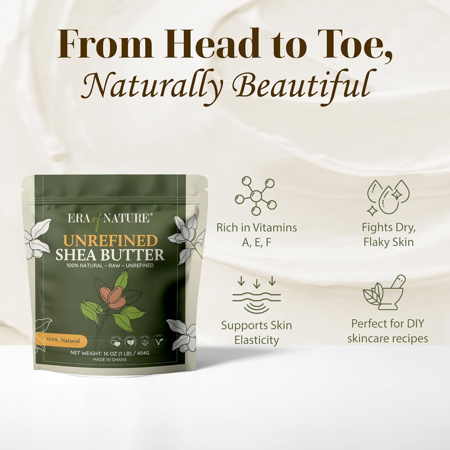 Be the first to review “era of nature Organic Unrefined Raw African Ivory White Shea Butter 16oz – Moisturizing Raw Shea Butter Bar for Skin & Hair, DIY Lip Balm Base, Cream, Soap & Lotion Making Supplies Kit, Skincare”