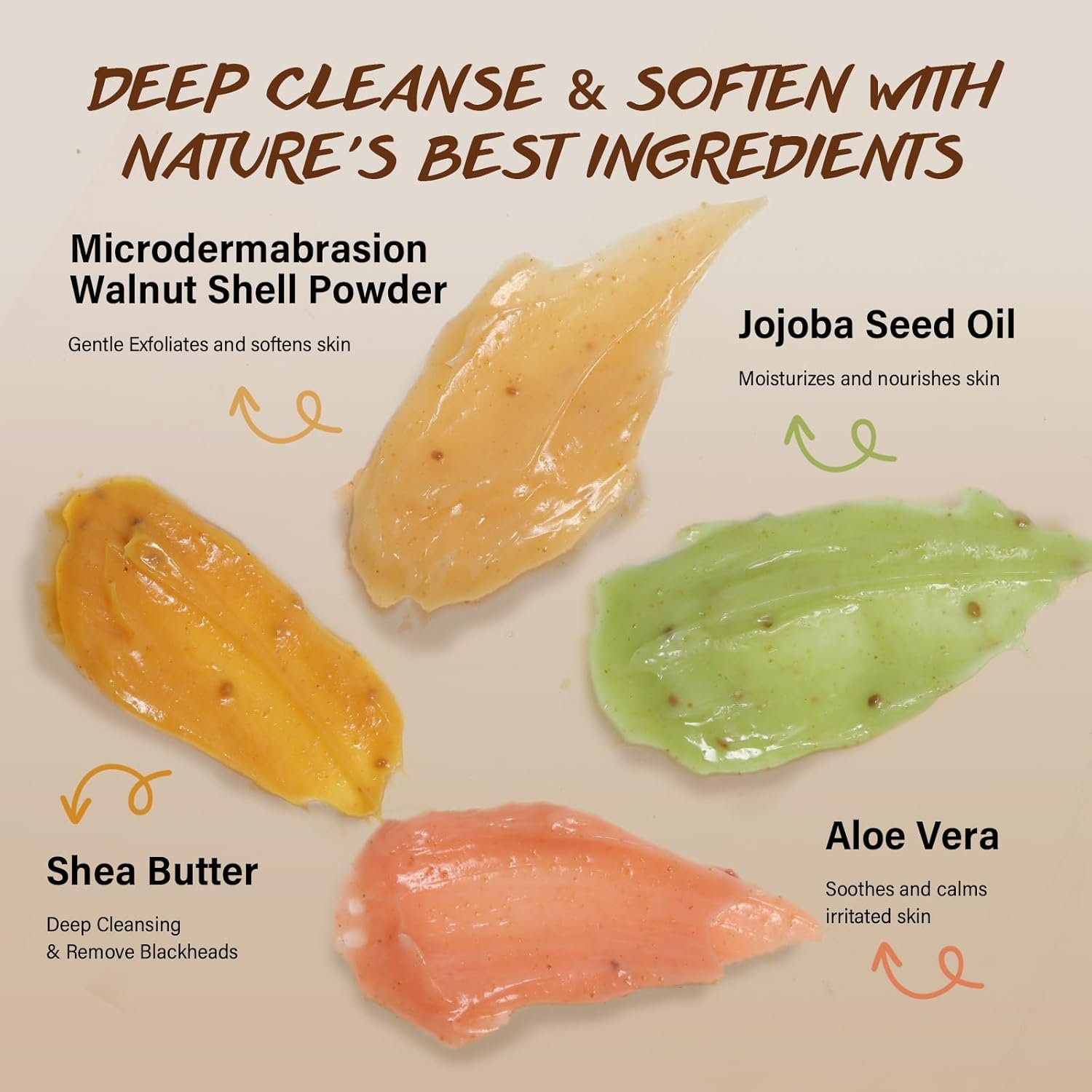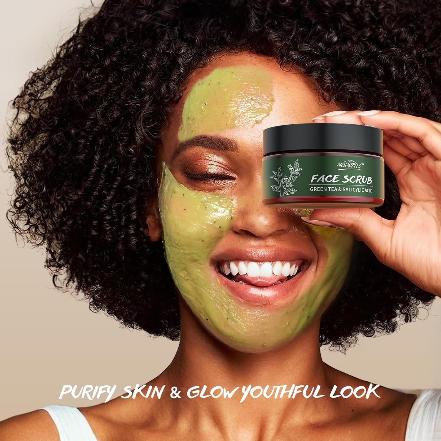 Green Tea & Salicylic Acid Blackhead Scrub: Enjoy the refreshing cleanse of Green Tea and Salicylic Acid as they work together to purify your skin. The lightweight texture gently removes impurities, while the calming green tea scent transports you to a serene space, balancing and smoothing your skin for a clear, fresh-faced look.