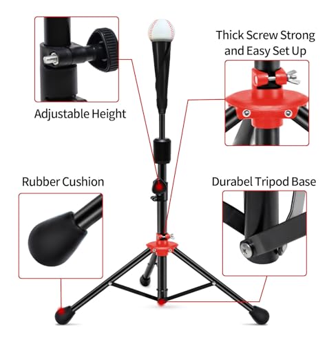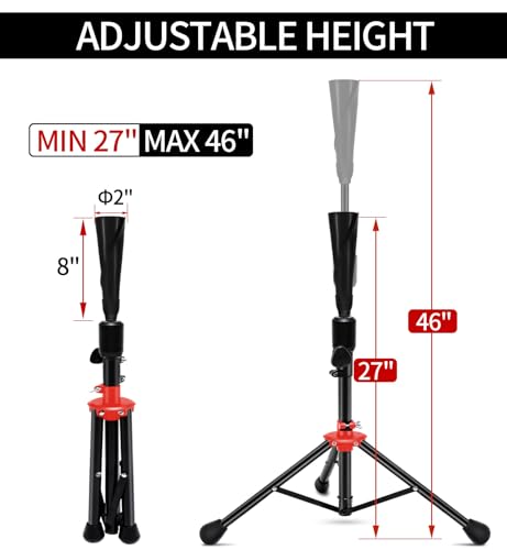 Specification: FDLS Baseball Batting tee for Adults and Youth Teens, Portable Tripod Stand Base Tee Easy Adjustable Height 27 to 46 inches for Hitting Training Practice, with Carrying Bag