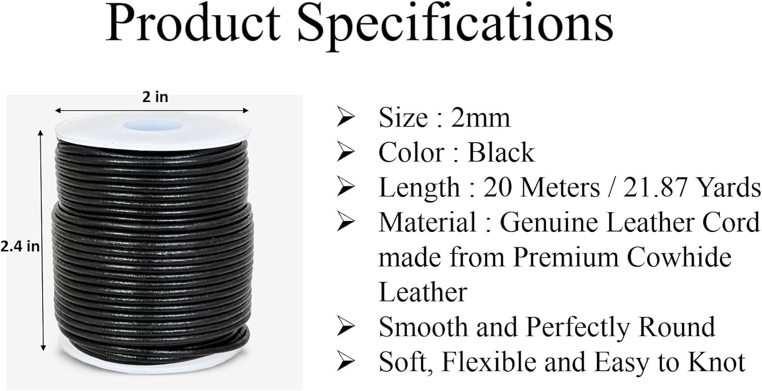 Versatile Leather String: 2mm leather cord for jewelry making is Easy to bend, knot, wrap and weave for limitless creative possibilities.