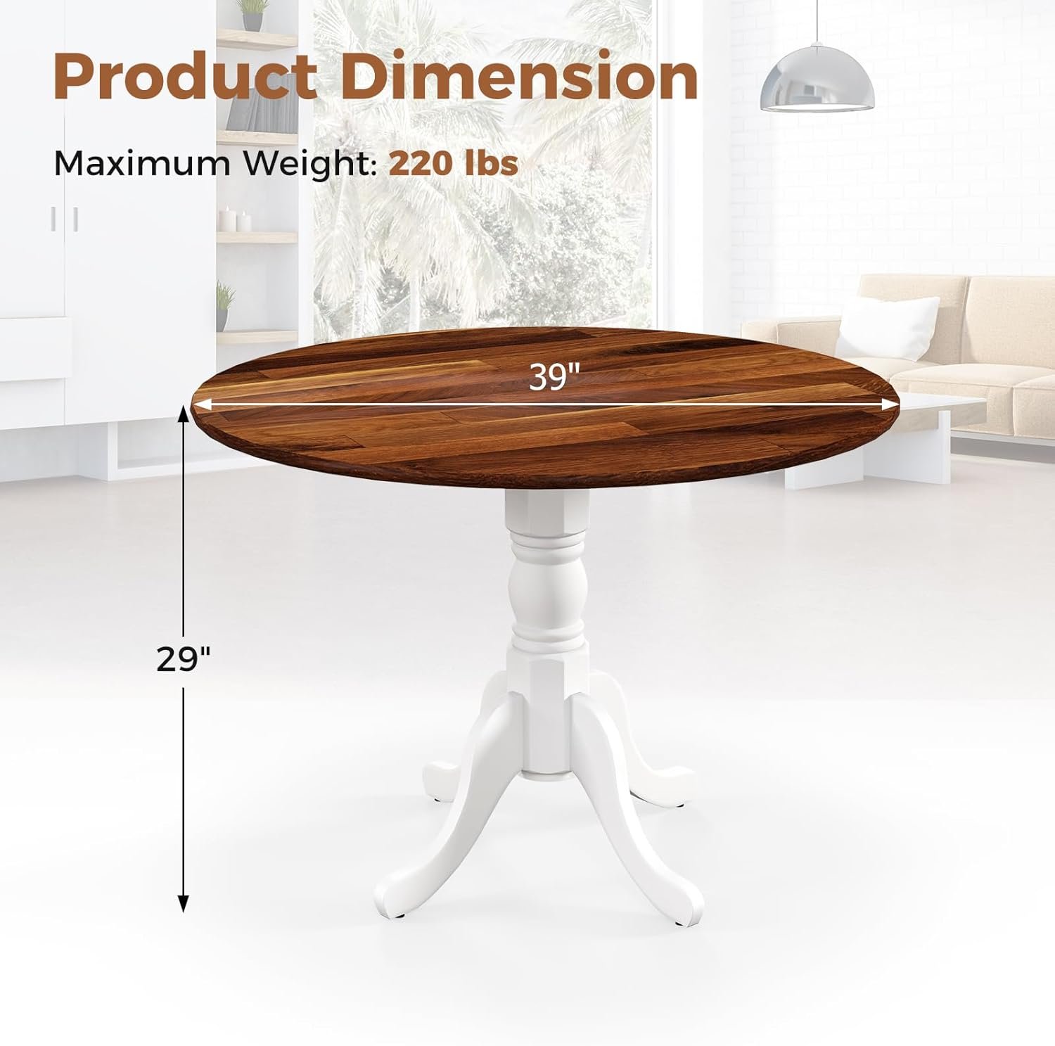 Be the first to review “Giantex Round Dining Table, 39″ D X 29″ H, Rubber Wood Pedestal Table W/Round Tabletop & Curved Trestle Legs, 4-Person Dinner Table for Kitchen, Dining Room, Restaurant (Walnut & White)”
