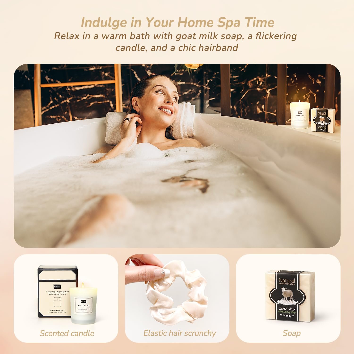 Self Care Gifts Set for Women: Help women unwind and relax with a calming bluebell scented candle, nourishing goat’s milk soap, and a soft elastic hair scrunchy. This comfort gift basket is designed to create a peaceful atmosphere and enhance a relaxing self care routine at home