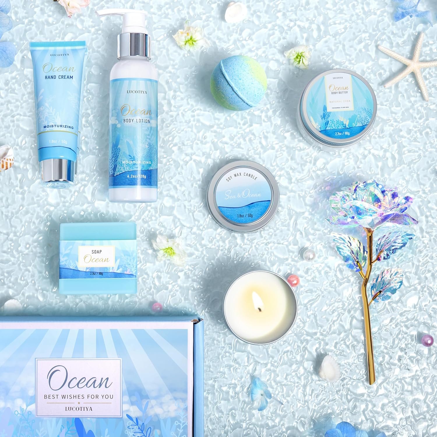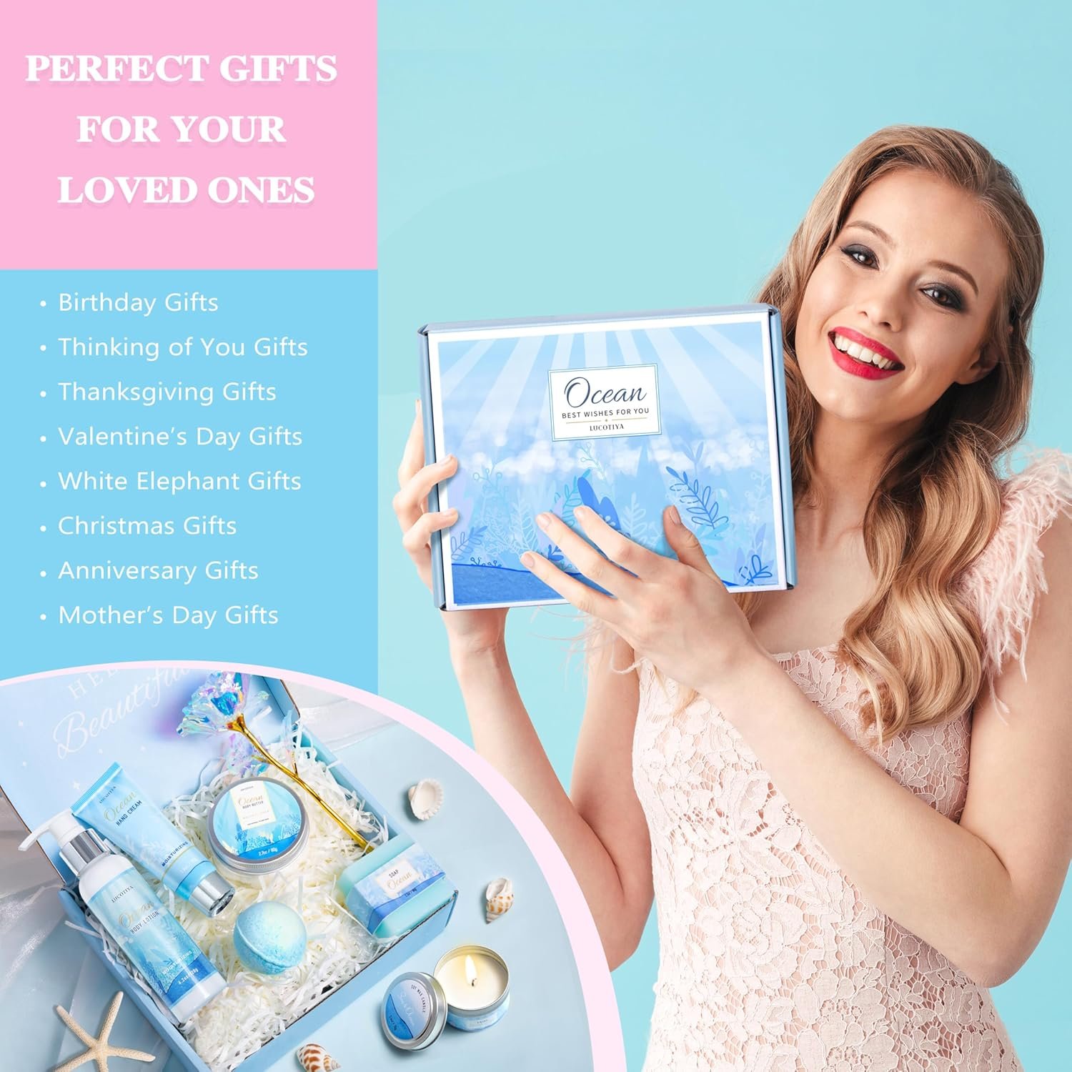 Gifts for Women, Ocean Scented Spa Gift for Women Birthday 7 Luxury Self Care Package, Gift Basket Care Package for Her Wife Mom Friends Female Bff