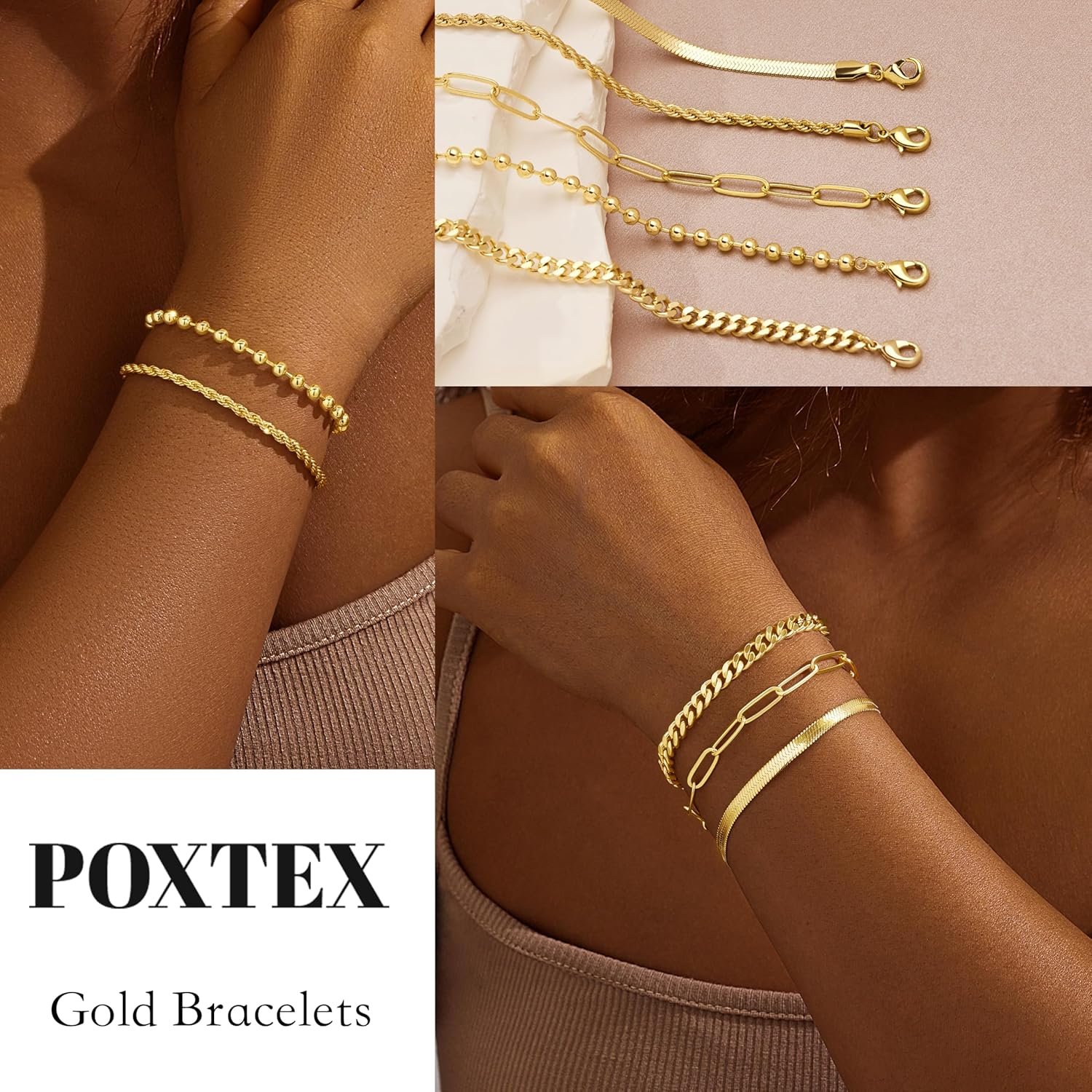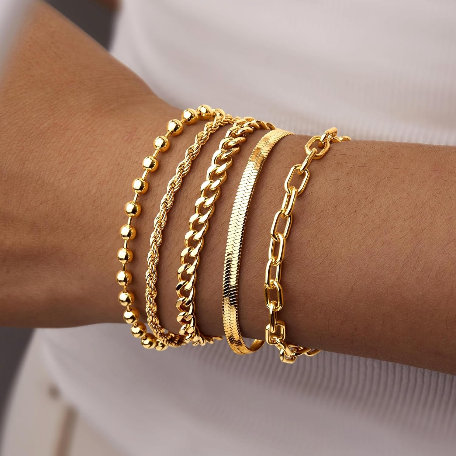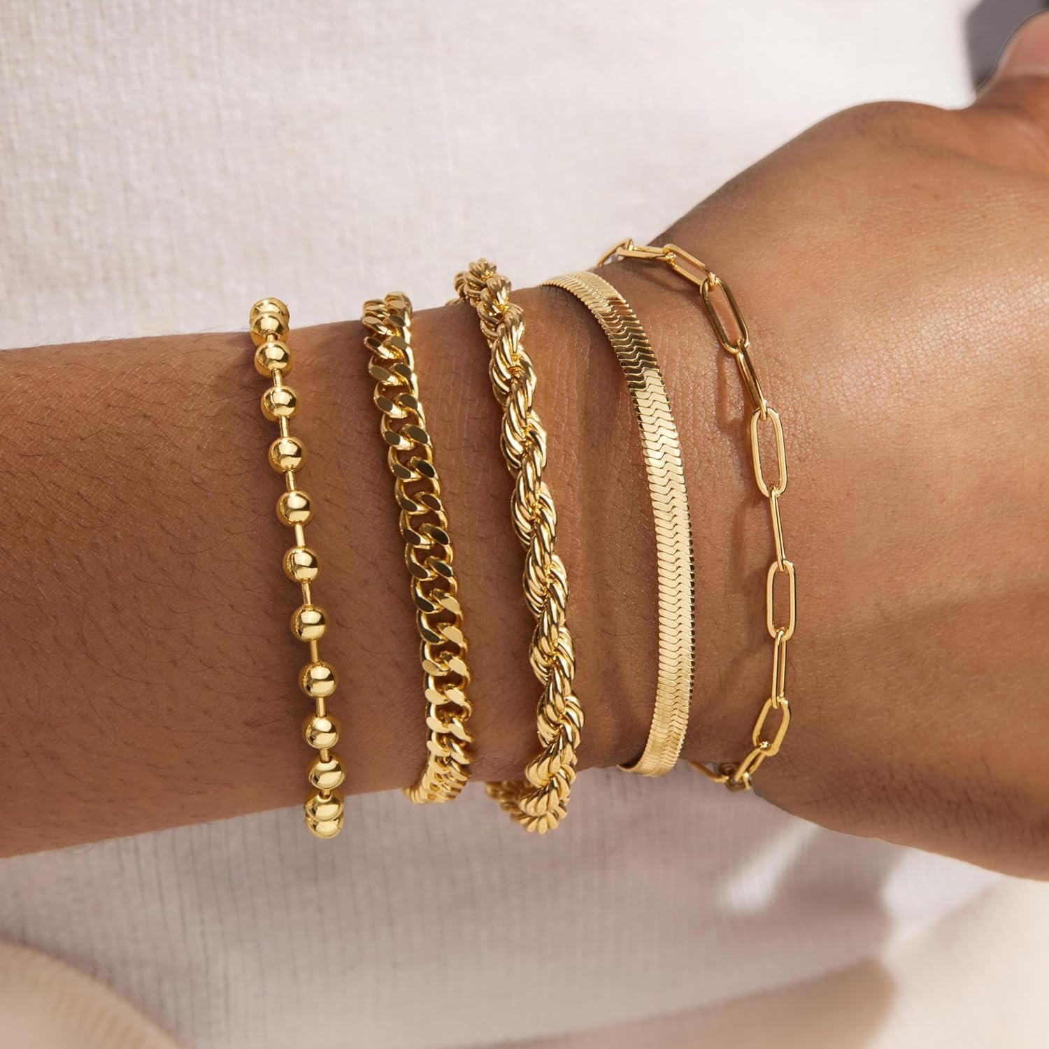 Gold Bracelets for Women,Dainty Bracelets Set for Women Trendy, Gold Bracelets Stack With Beaded, Cuban, Paperclip, Heart, Snake, Rope, Pearl, Cross, Hand Chain, Silver Jewelry Gifts for Women Mom